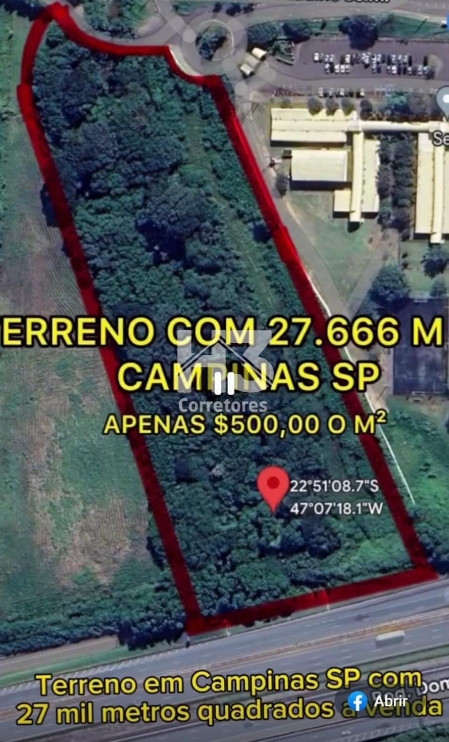 Terreno com 27.666,40m² a venda em Campinas S.P. Localizado entre a Rodovia Dom Pedro 1 e a Avenida Comendador Aladino...