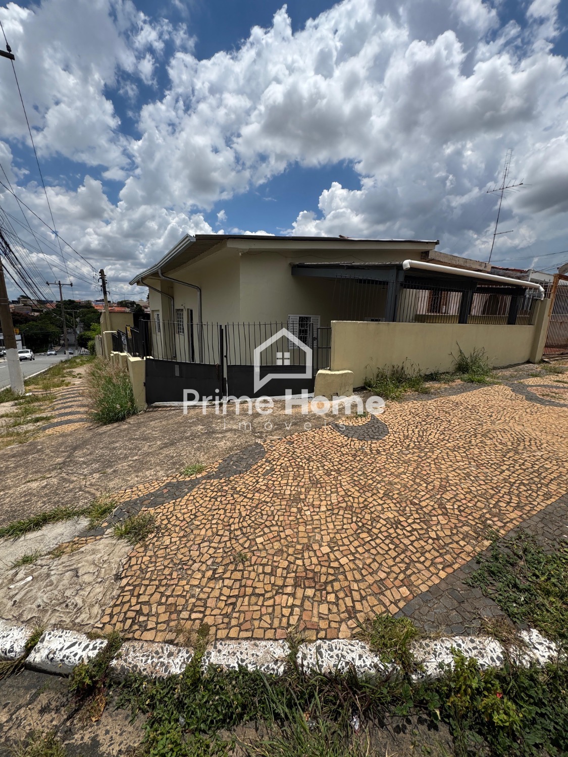 TE028168Terreno para alugar no Vila Industrial em CampinasTerreno murado e chão de paralelepípedos em rua movimentada.