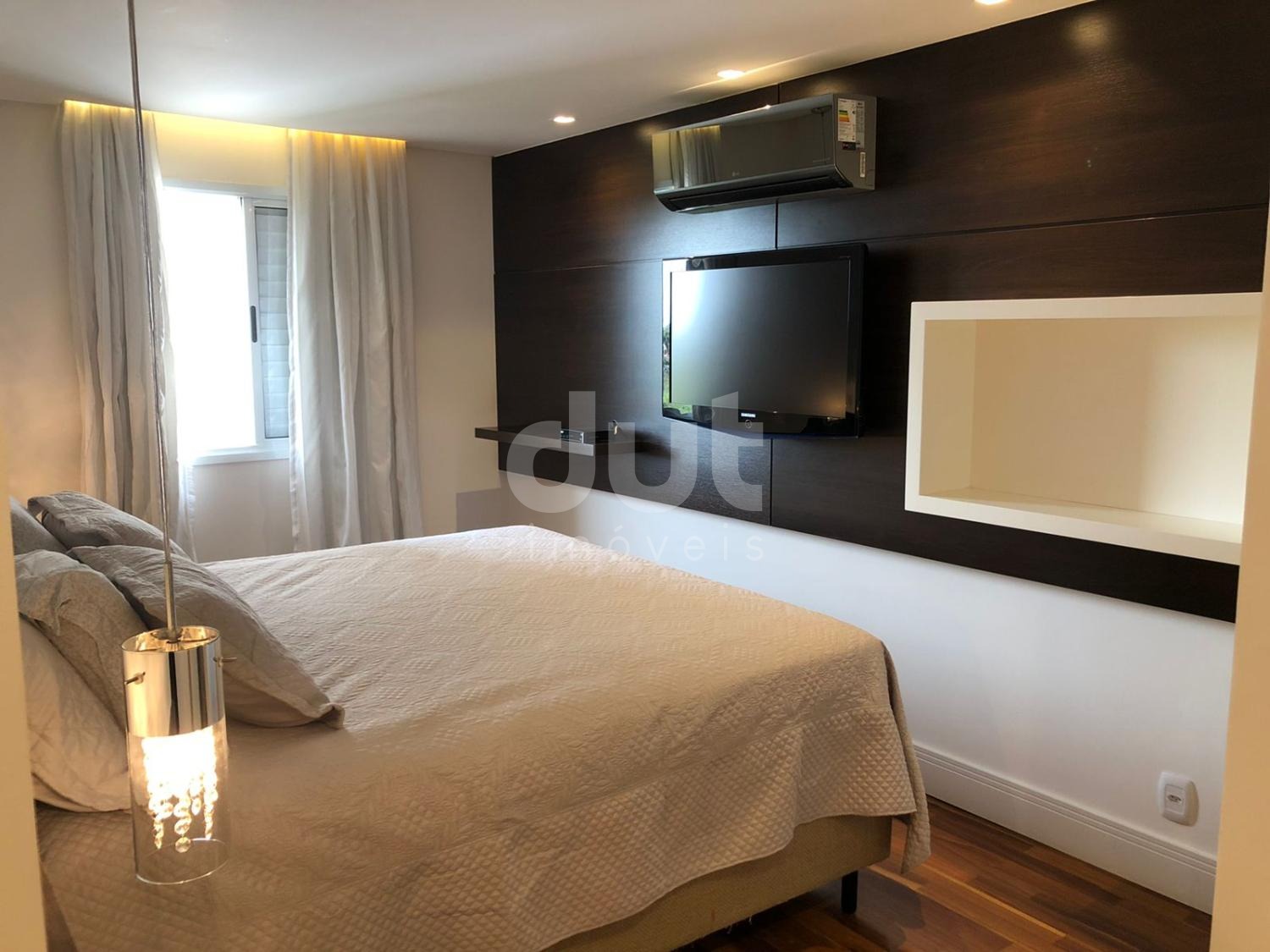 Piso Superior com suíte máster, closet amplo e ventilado, banho com duas duchas, cuba de bancada em mármore e com torneiras individuais. 2 outras suítes completas com AE. Home theater. Todos os ambientes com ar condicionado. Aquecimento a gás, 4 vagas de garagem. Lazer completo, quadras de tênis, poliesportiva, piscinas adulto infantil. Porcelanato 1,20x1,20 nas área sociais e taco de madeira nas áreas íntimas.