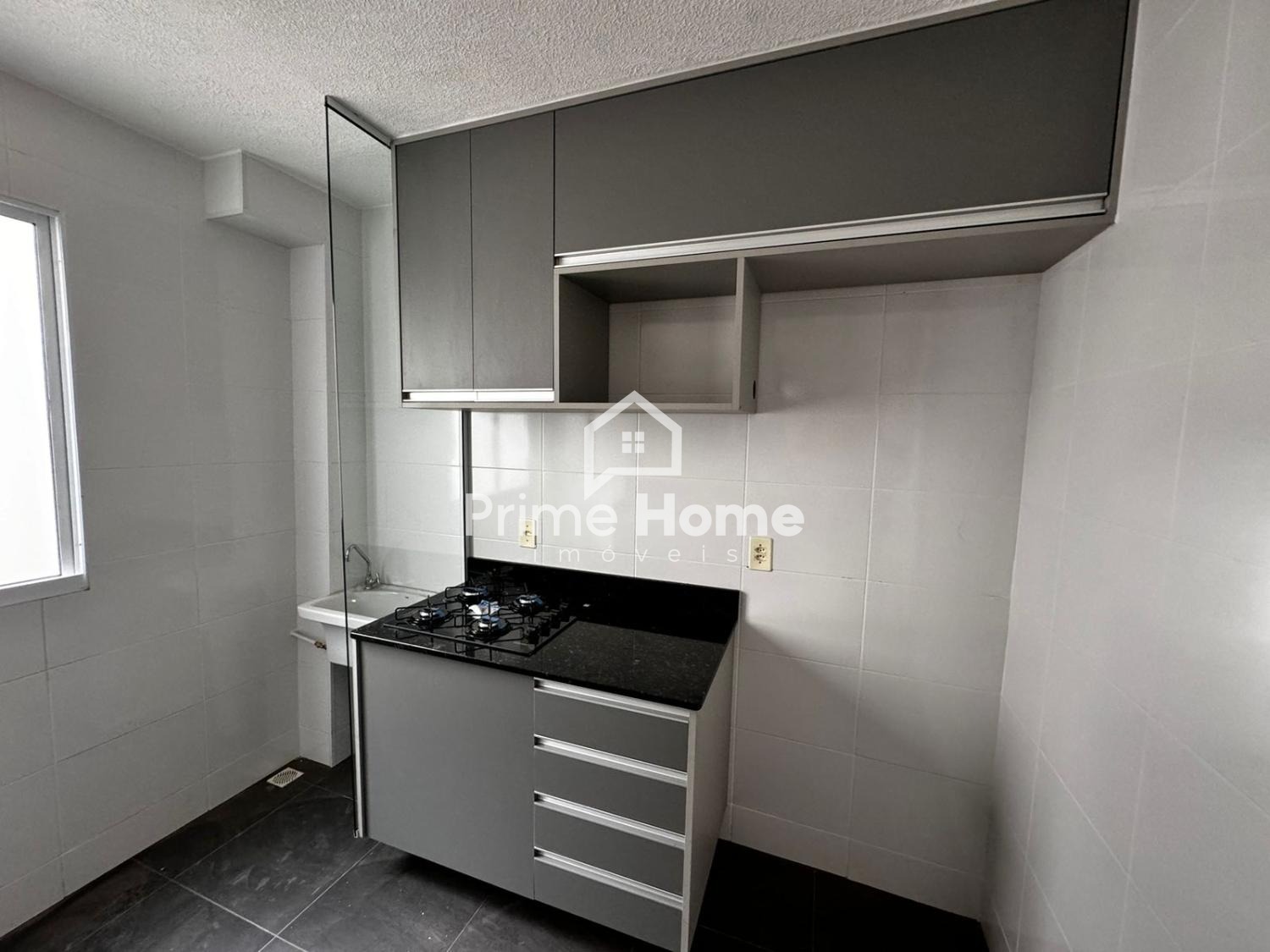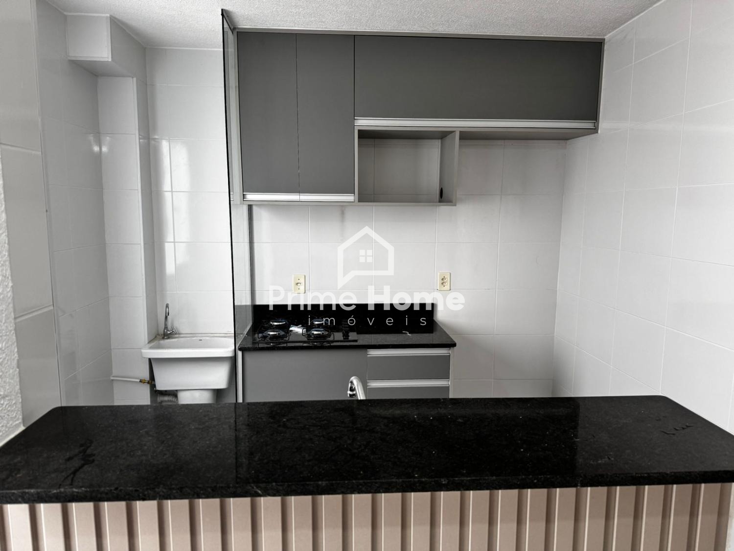 Apartamento no Condomínio Canto dos Pássaros, com 45 m² sendo sala de estar, cozinha americana planejada, área de serviço, banheiro social, 2 dormitórios e 1 vaga.