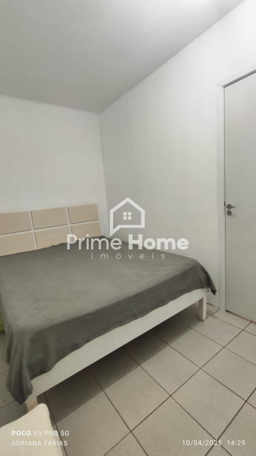 O imóvel dispõe de 1 quarto com armário planejado, sala ampla, cozinha com armários, área de serviço e banheiro social com pia e box. Possui piso frio, gás encanado e será entregue semi mobiliado, incluindo cama de casal com colchão, geladeira e outros pequenos móveis.