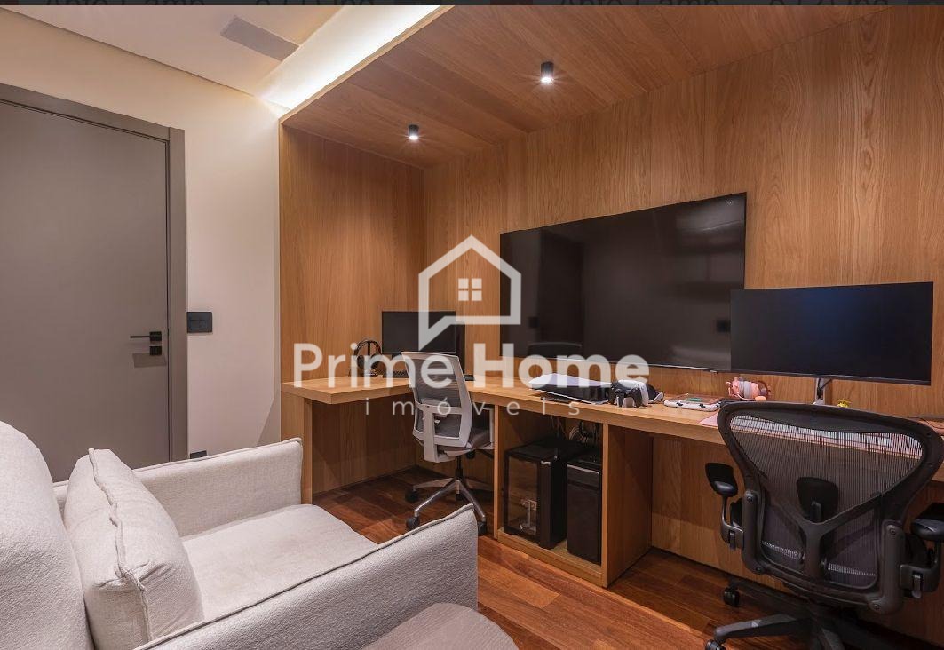 Este imóvel de alto padrão, com 140 m², oferece três suítes, um escritório com banheiro exclusivo, sala ampla para dois ambientes, sacada, lavanderia, cinco banheiros ao todo e cinco vagas de garagem cobertas. A suíte master se destaca pelos banheiros Sr. e Sra. e pelo amplo closet, garantindo ainda mais conforto e privacidade.