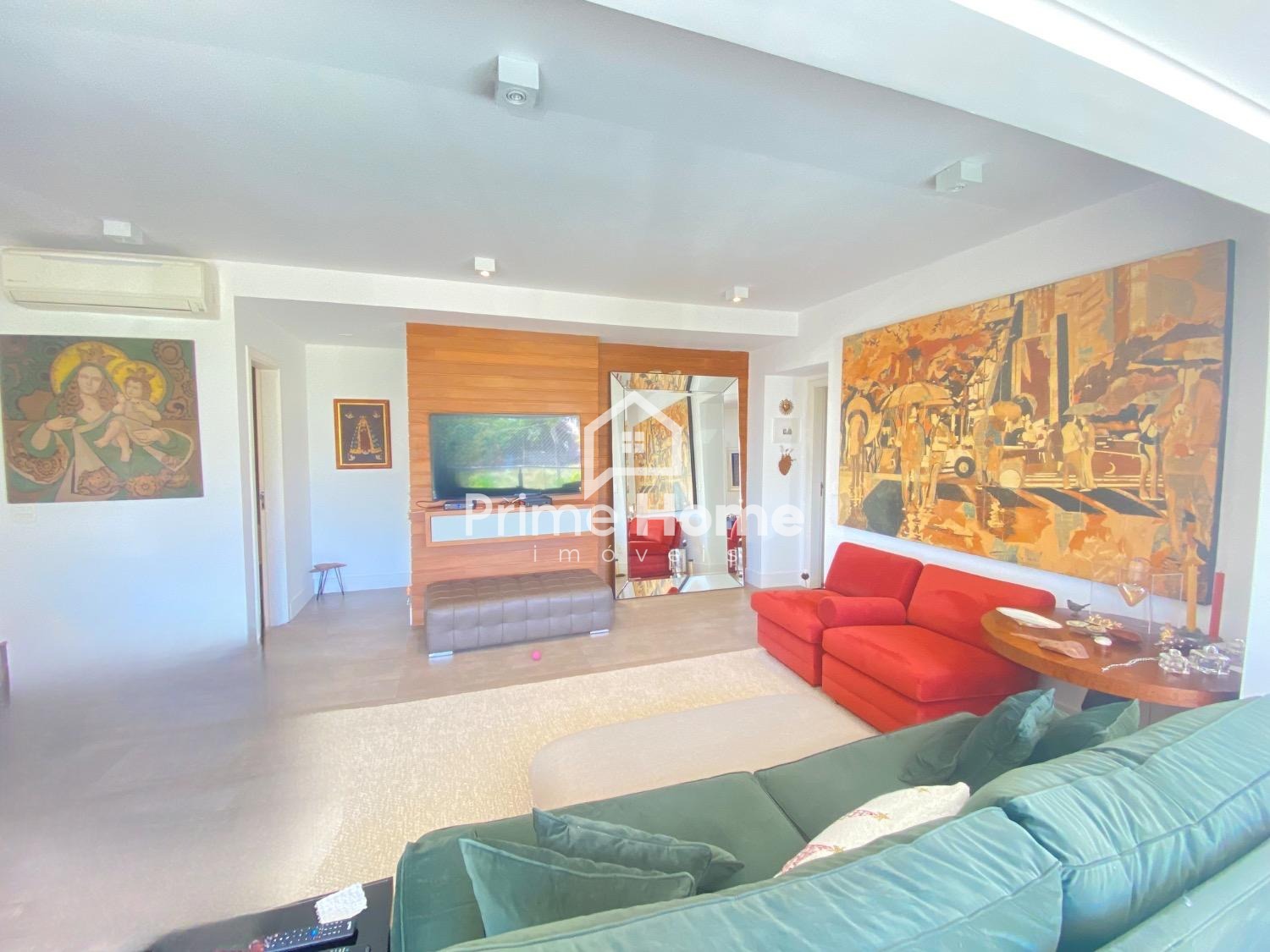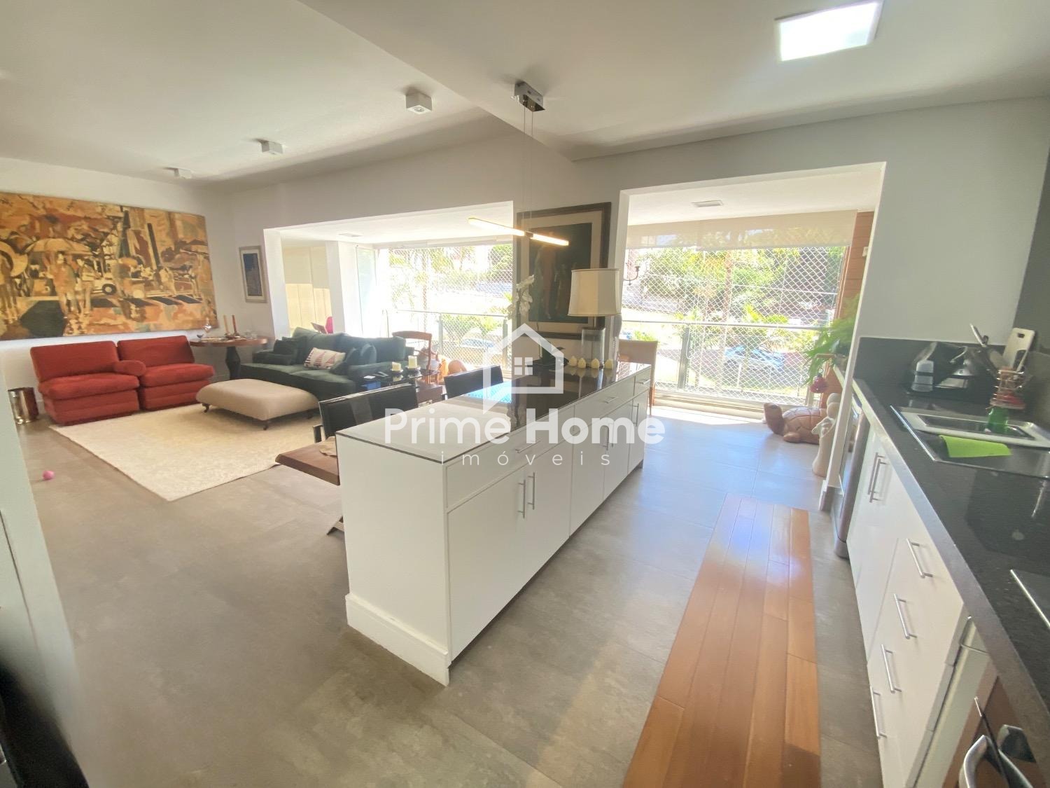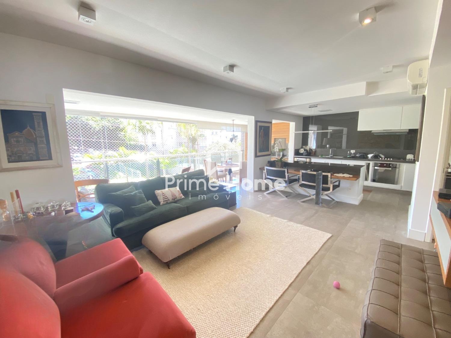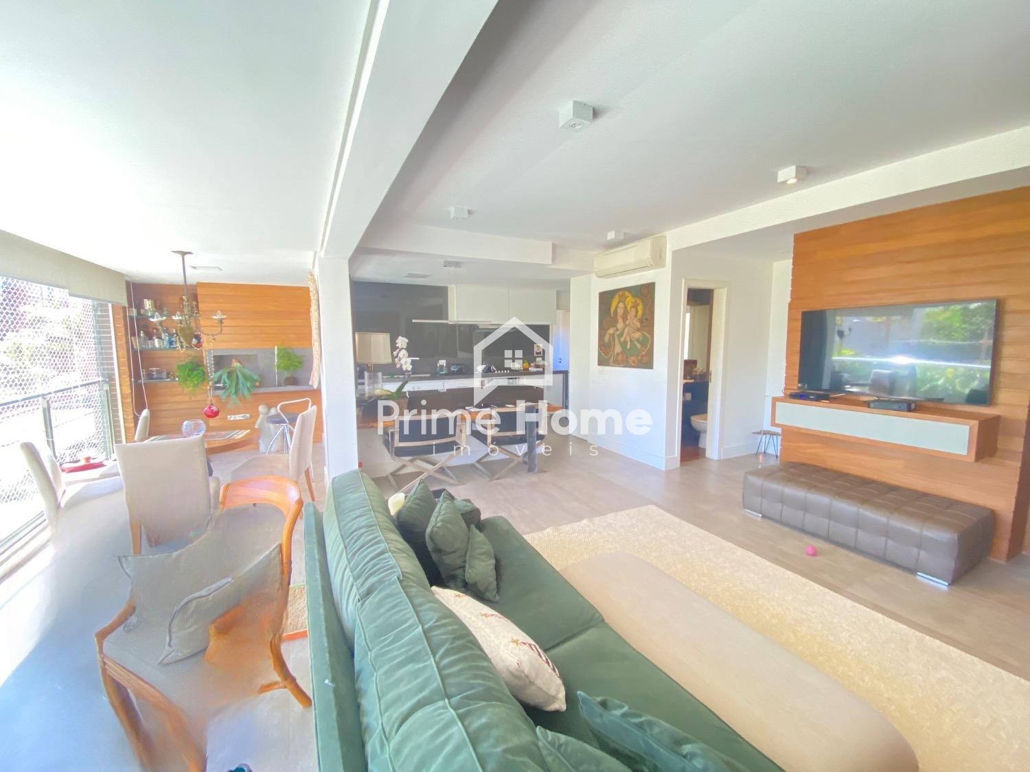 Amplo living para 2 ambientes com piso em porcelanato