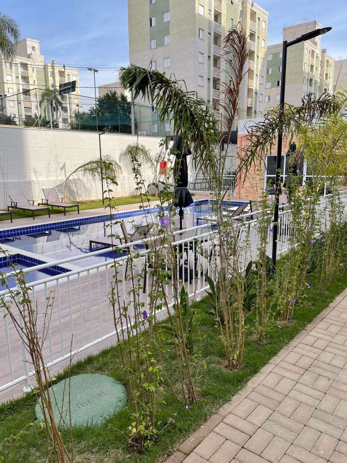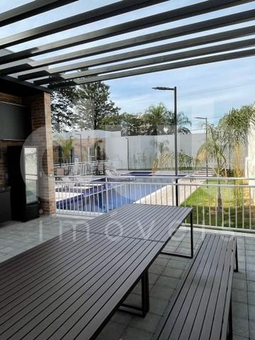 Condomínio com lazer completo: piscina adulto e infantil, salão de festas, garagem com cobertura, espaço gourmet com churrasqueira, academia equipada, quadra poliesportiva, playground, redário, horta comunitária, portaria 24h e vagas para visitantes.