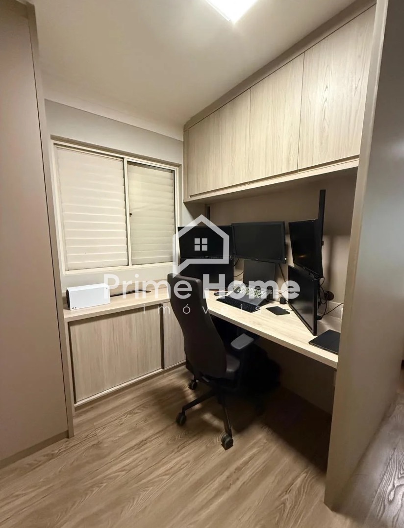 Apartamento à venda no Condomínio Villagio di Roma, Chácara da Barra, Campinas/SP. Localizado no 11º andar, com 76 m², sol da tarde e vista privilegiada. Conta com 2 vagas de garagem, suíte estendida com closet e home office, sala ampliada com possibilidade de reversão para segundo quarto, e cozinha americana integrada. O imóvel foi totalmente reformado, é rico em armários planejados, possui infraestrutura para ar-condicionado, porcelanato Portobello nas áreas molhadas e piso vinílico nas áreas secas.