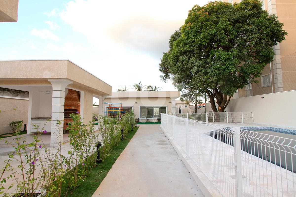 O condomínio oferece área de lazer completa, com piscinas adulto e infantil, salão de festas, três churrasqueiras, quadra poliesportiva, pequeno pomar e portaria 24 horas.