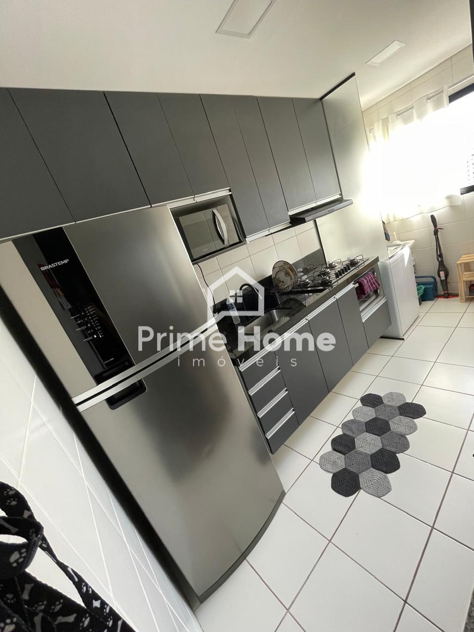 O condomínio é completo, com playground, quadra, área gourmet com churrasqueira, bicicletário, mercado 24h, área pet, salão de festas, placas solares, além de portaria 24h com catraca eletrônica e reconhecimento facial.