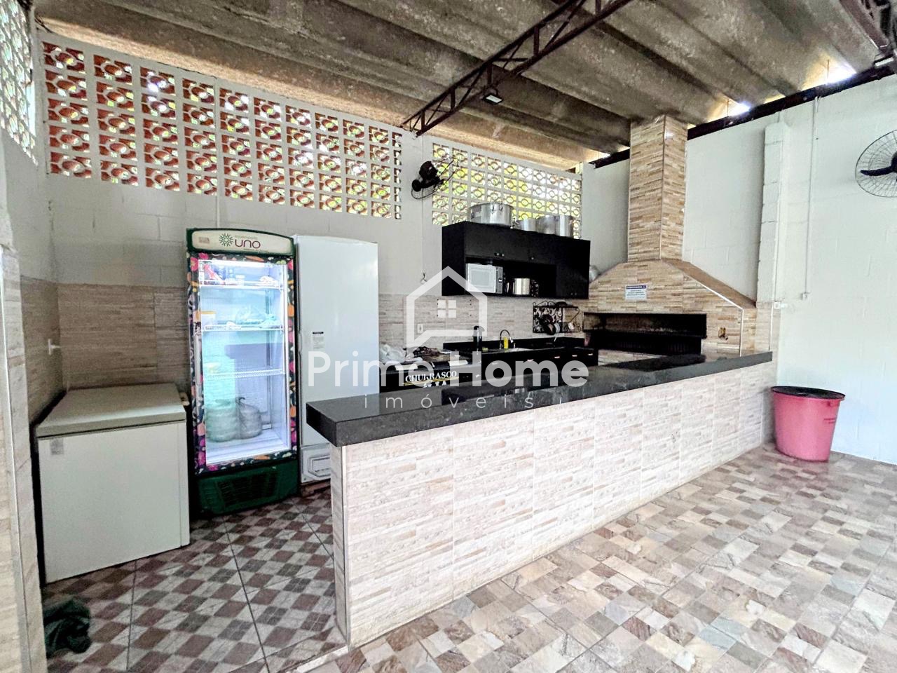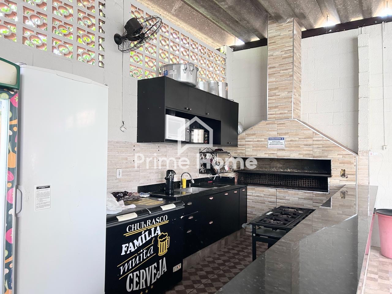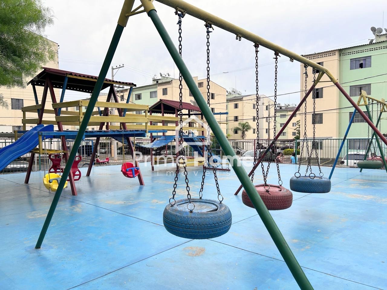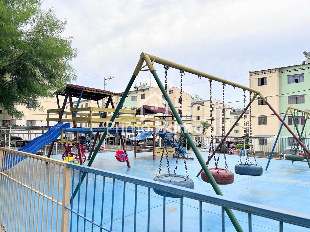 Condomínio com salão de festa e playground.