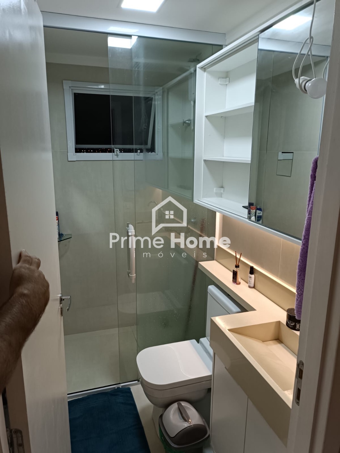 Imóvel em andar alto, com 50 m², piso em porcelanato, ventilador de teto e armários planejados. A sala conta com luminárias embutidas, enquanto a cozinha é totalmente planejada, equipada com cooktop e depurador de ar. São dois dormitórios com armários planejados e televisão embutida no armário, além de banheiro social com armário, pia em pedra, espelho amplo e box em vidro. Possui uma vaga de garagem.