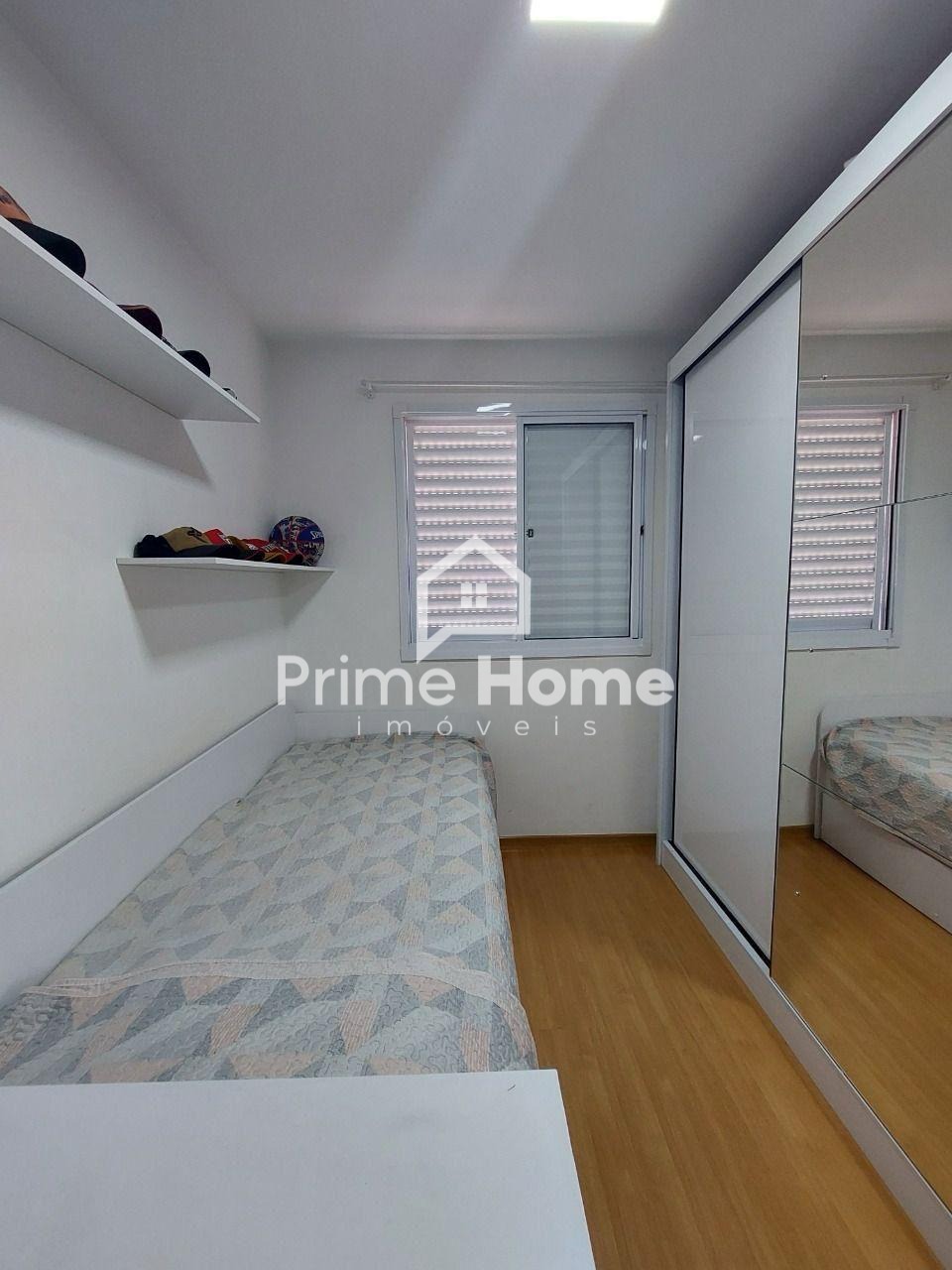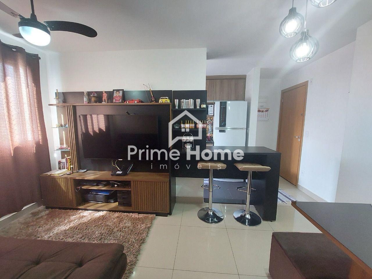A cozinha é planejada e equipada com cooktop e forno, além de lavanderia integrada, oferecendo praticidade no dia a dia. O banheiro social possui armário e box de vidro, com acabamento moderno. O imóvel conta ainda com piso laminado nas áreas quentes e porcelanato nas áreas frias, além de ventilador de teto, garantindo mais conforto.
