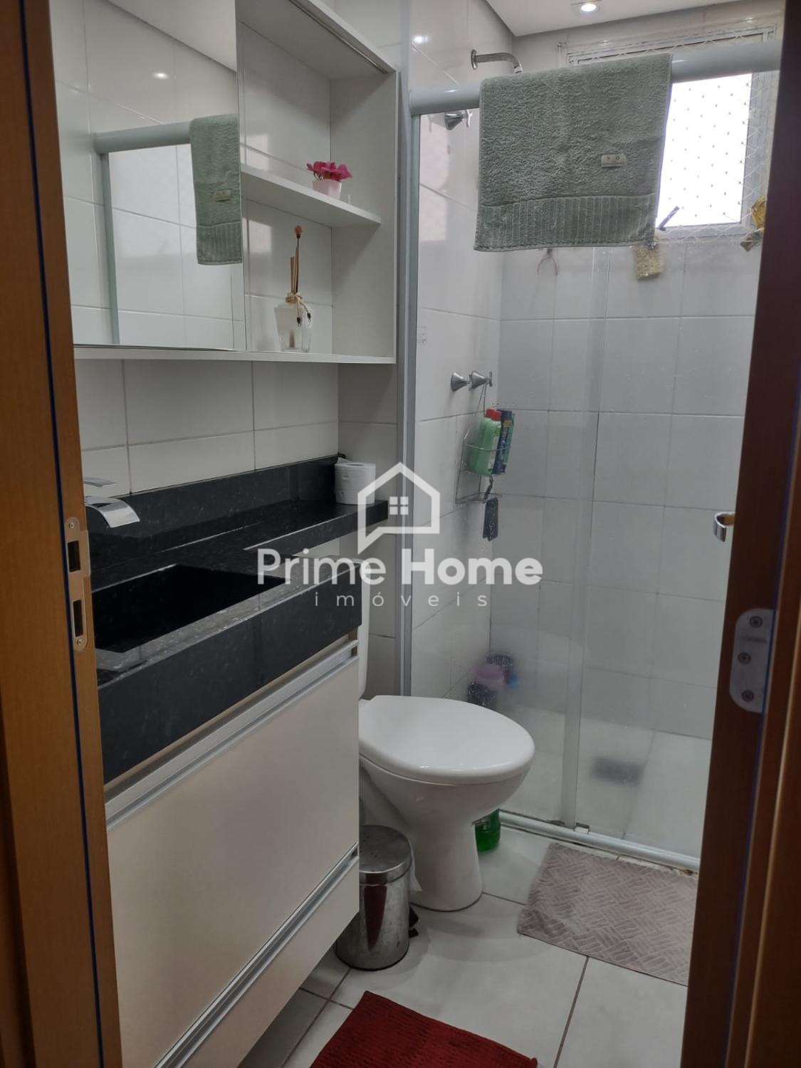 A cozinha é planejada, oferecendo funcionalidade e bom aproveitamento de espaço, integrada à lavanderia. O banheiro social também é planejado, com armário e box, trazendo mais organização e comodidade no dia a dia.