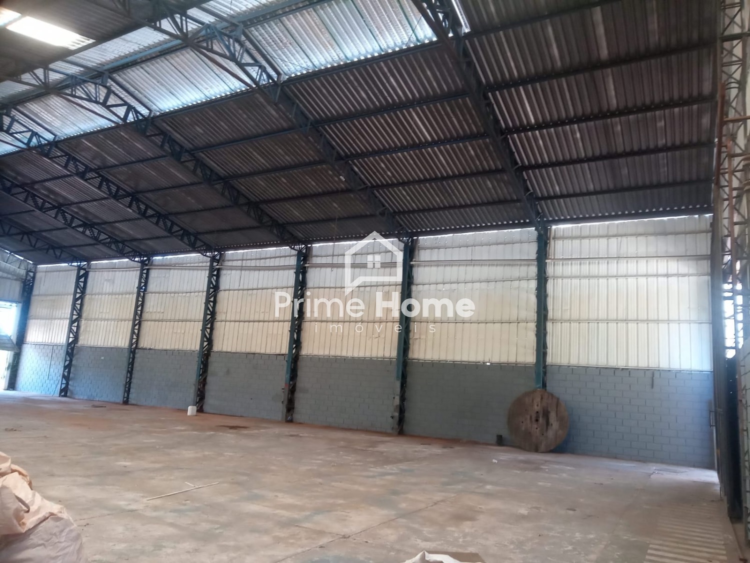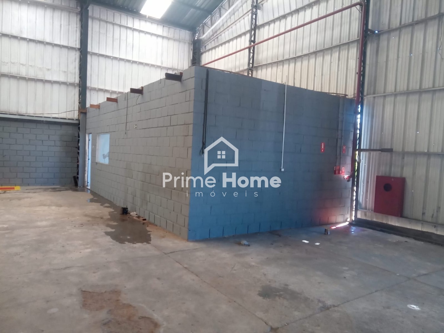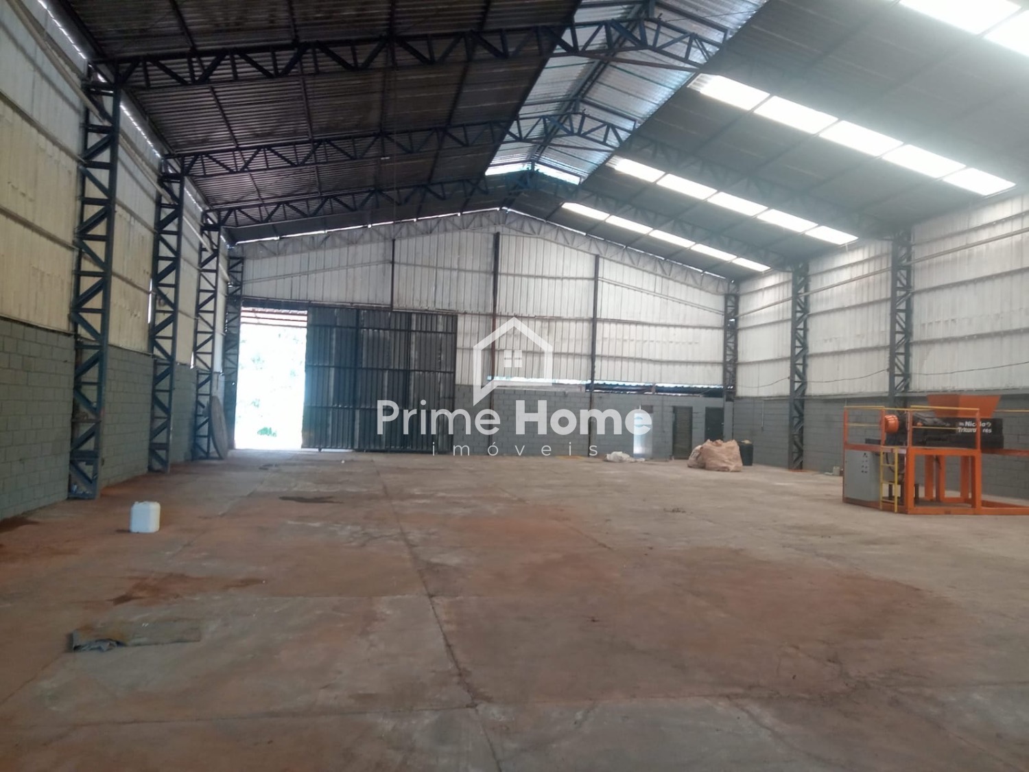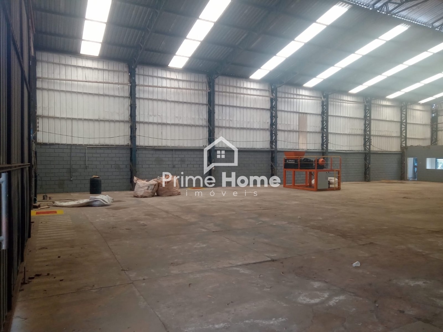 Barracão com 1.000 m² total divididos em barracão e pátio, com 750 m² de construção com banheiros e copa e salas.