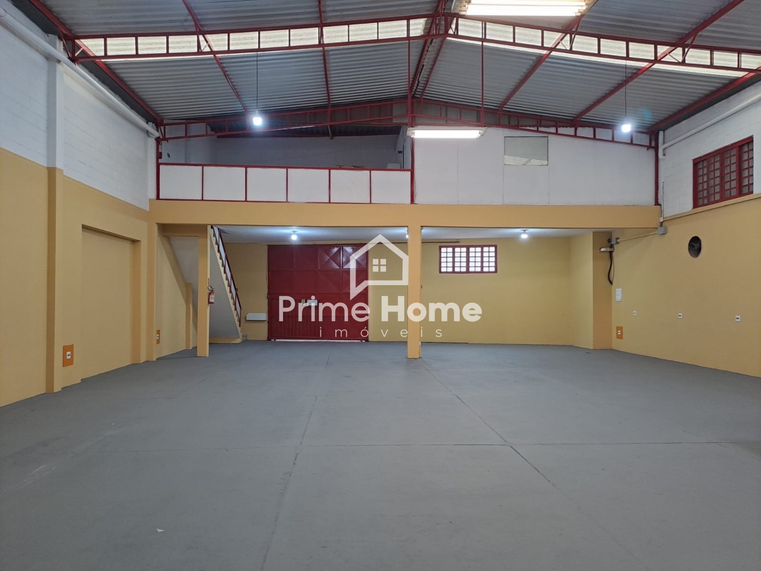 Barracão com piso inferior de 300 m2 e mazanino com 100 m2.