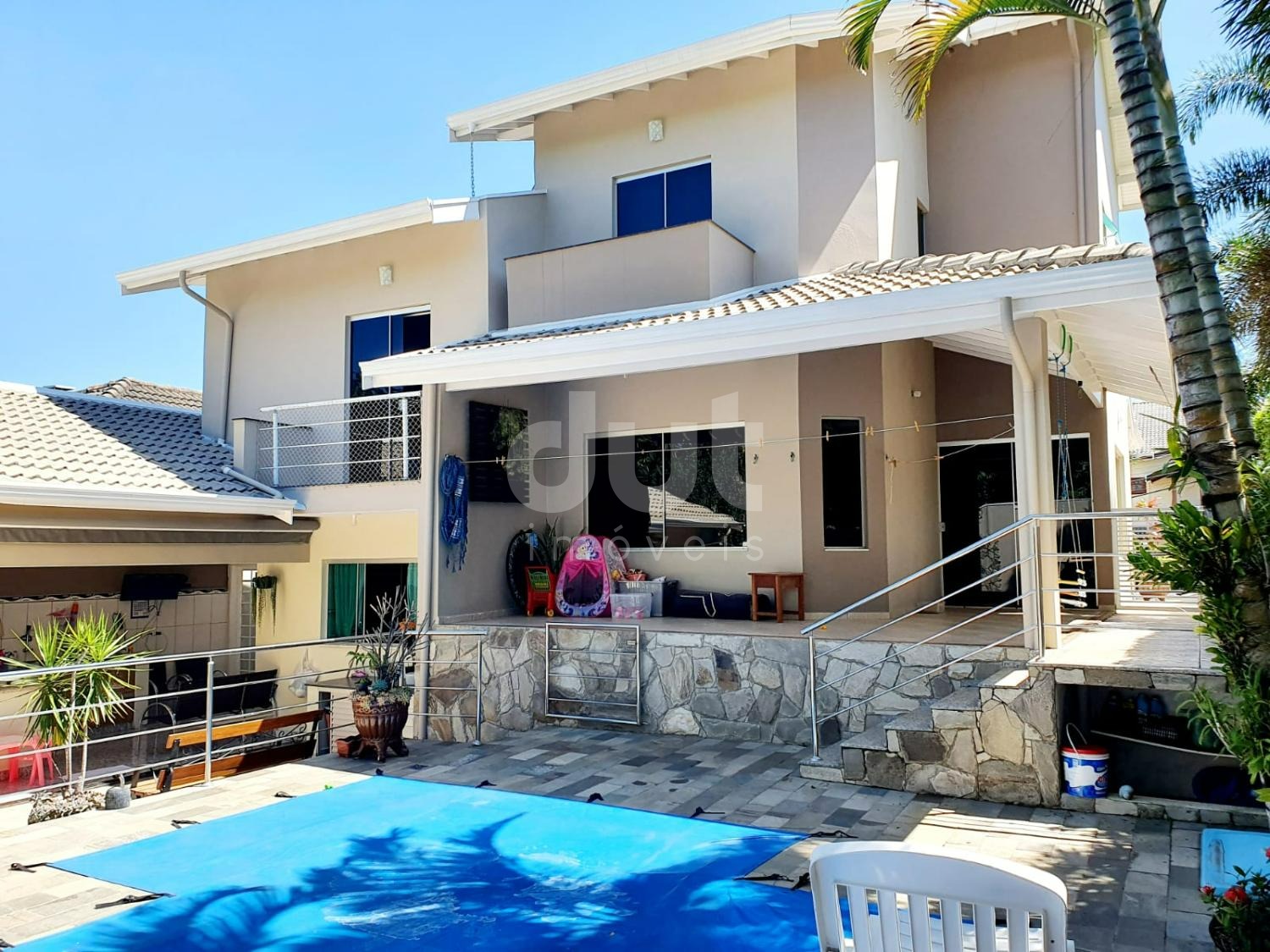 Casa em condomínio em Valinhos com 323 m² de construção em terreno com 418 m² sendo 2 salas amplas, lavabo, cozinha com armários, lavanderia, escritório, área gourmet com churrasqueira, piscina preparada para aquecimento, wc, externo, 3 dormitórios com ar condicionado sendo 1 suíte e 3 vagas de garagem. Condomínio dispõe de playground e portaria 24 horas. Agende uma visita.