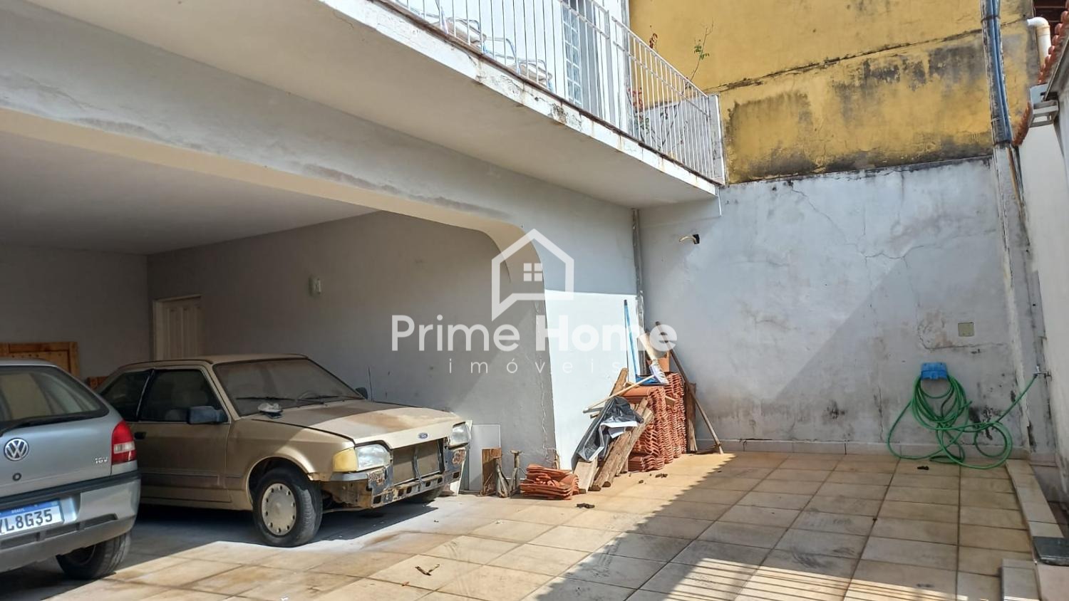 Na parte térrea.: (frente da casa), 05 vagas de garagem (2 cobertas e 3 descobertas) e escadas para acesso ao imóvel.