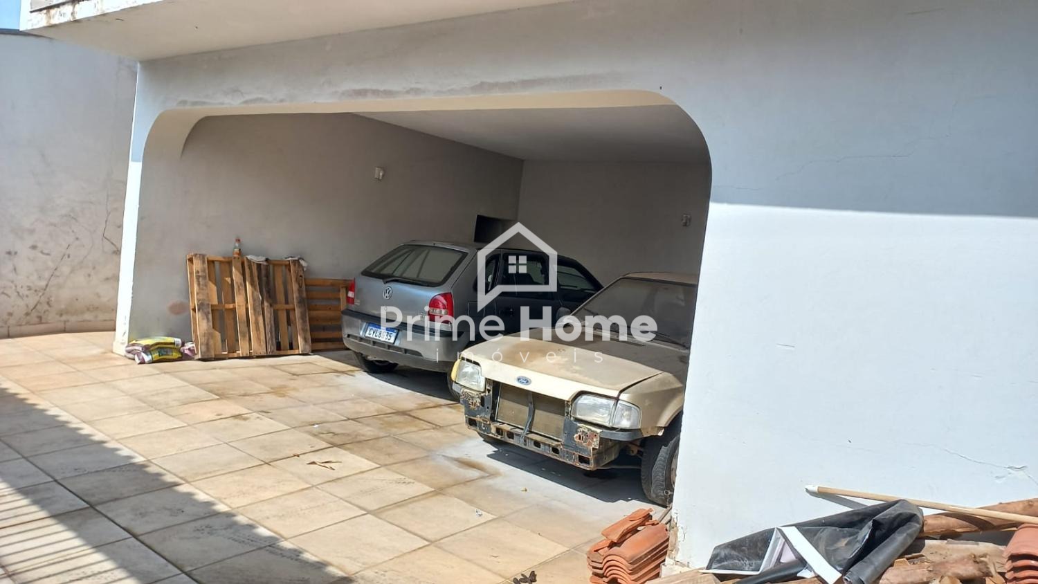 Na parte térrea.: (frente da casa), 05 vagas de garagem (2 cobertas e 3 descobertas) e escadas para acesso ao imóvel.