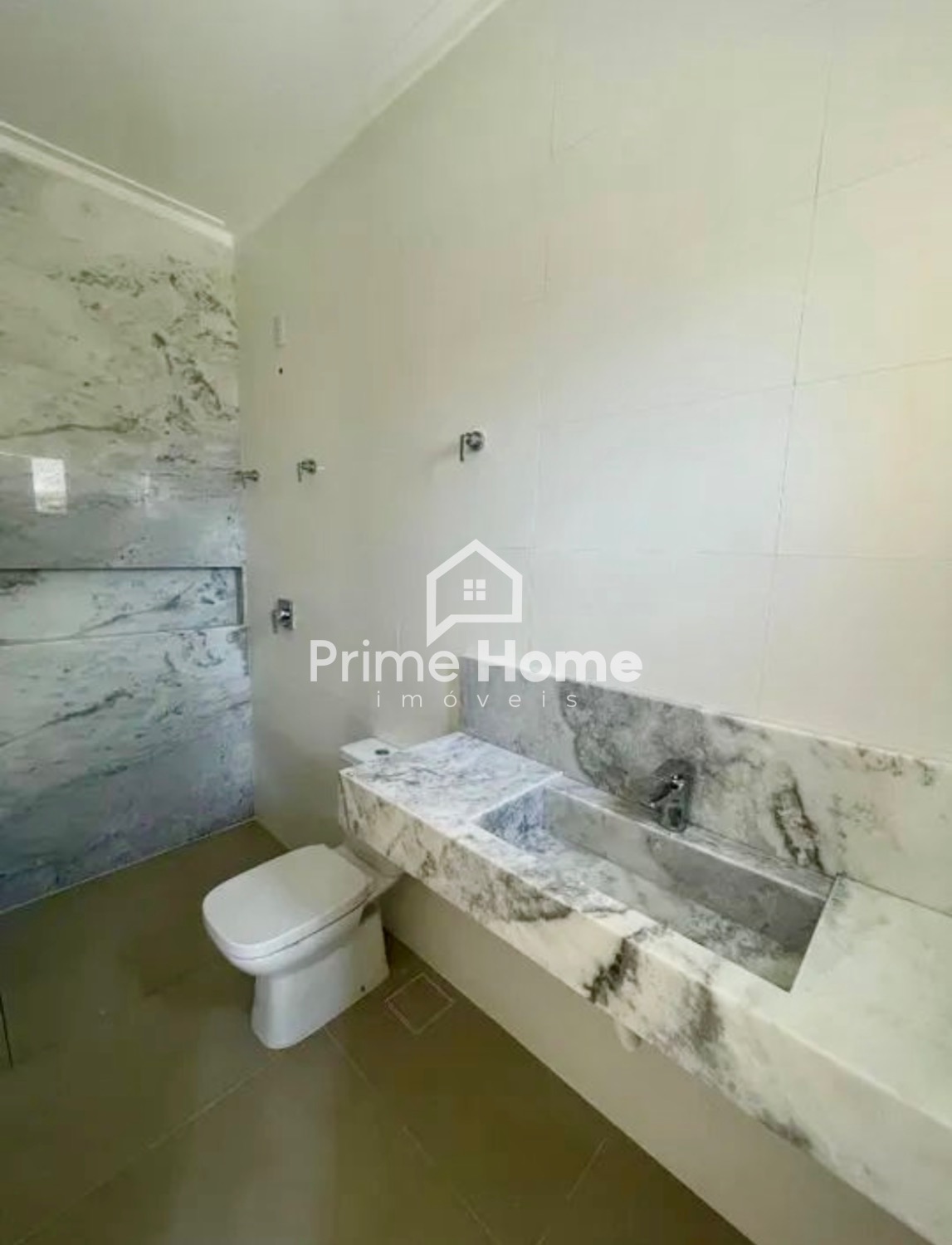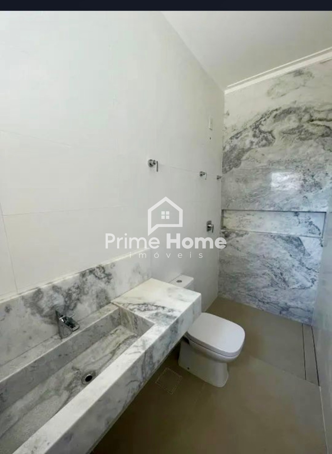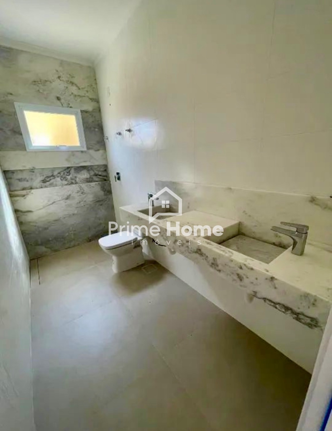 • Bancadas dos banheiros e parede em mármore;