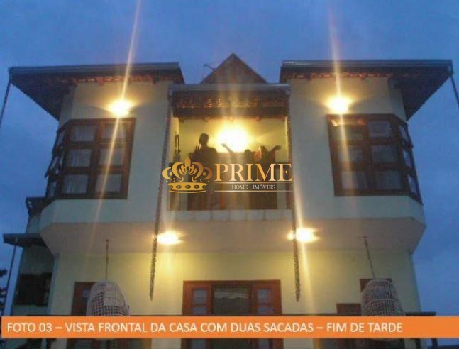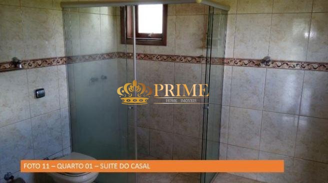 Sobrado em condomínio fechado com 196 m² de construção em terreno com 800 m² sendo living para 2 ambientes, cozinha, lavabo, área de serviço, 1 banheiro externo, 1 sala para arquivo/estoque e 2 dormitórios, sendo 2 suítes. O imóvel possui churrasqueira, fogão a lenha, forno de pizza, amplo quintal gramado, piscina, reservatório em alvenaria, poço caipira com água potável e 10 vagas de garagem.