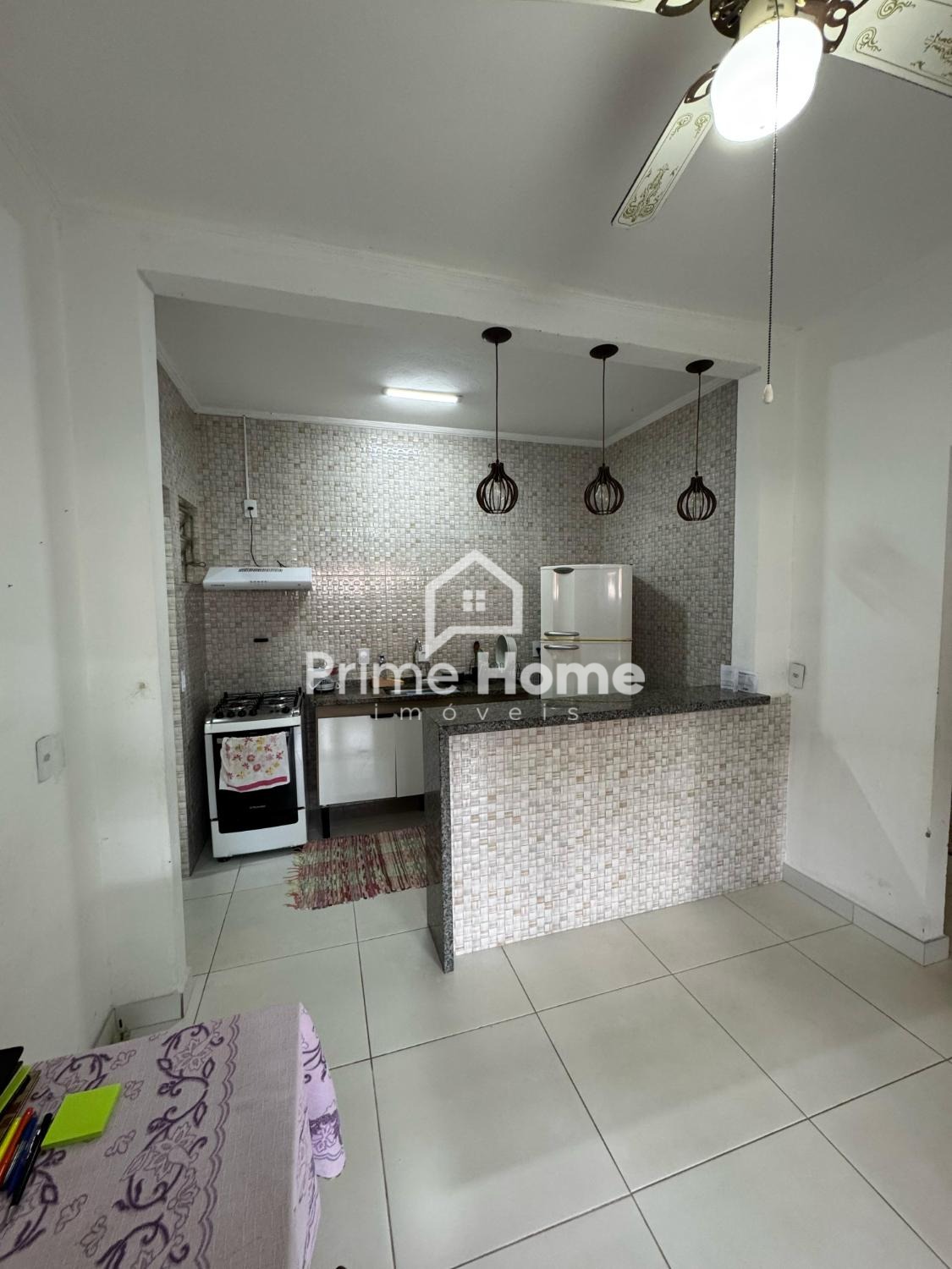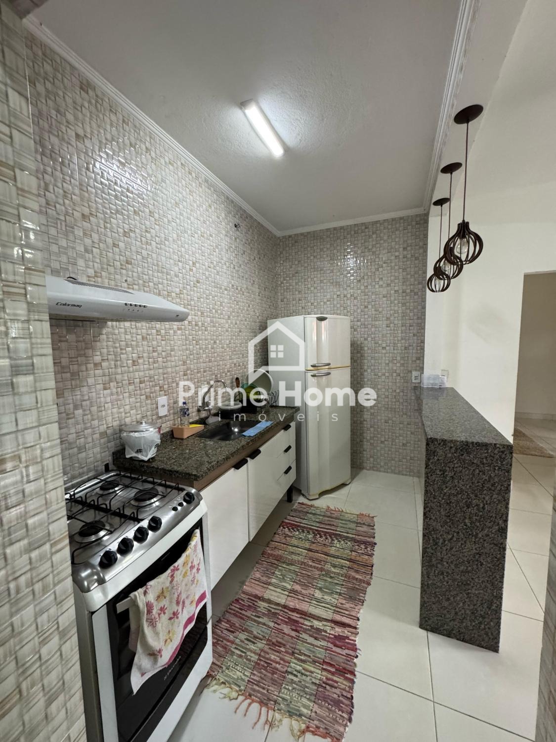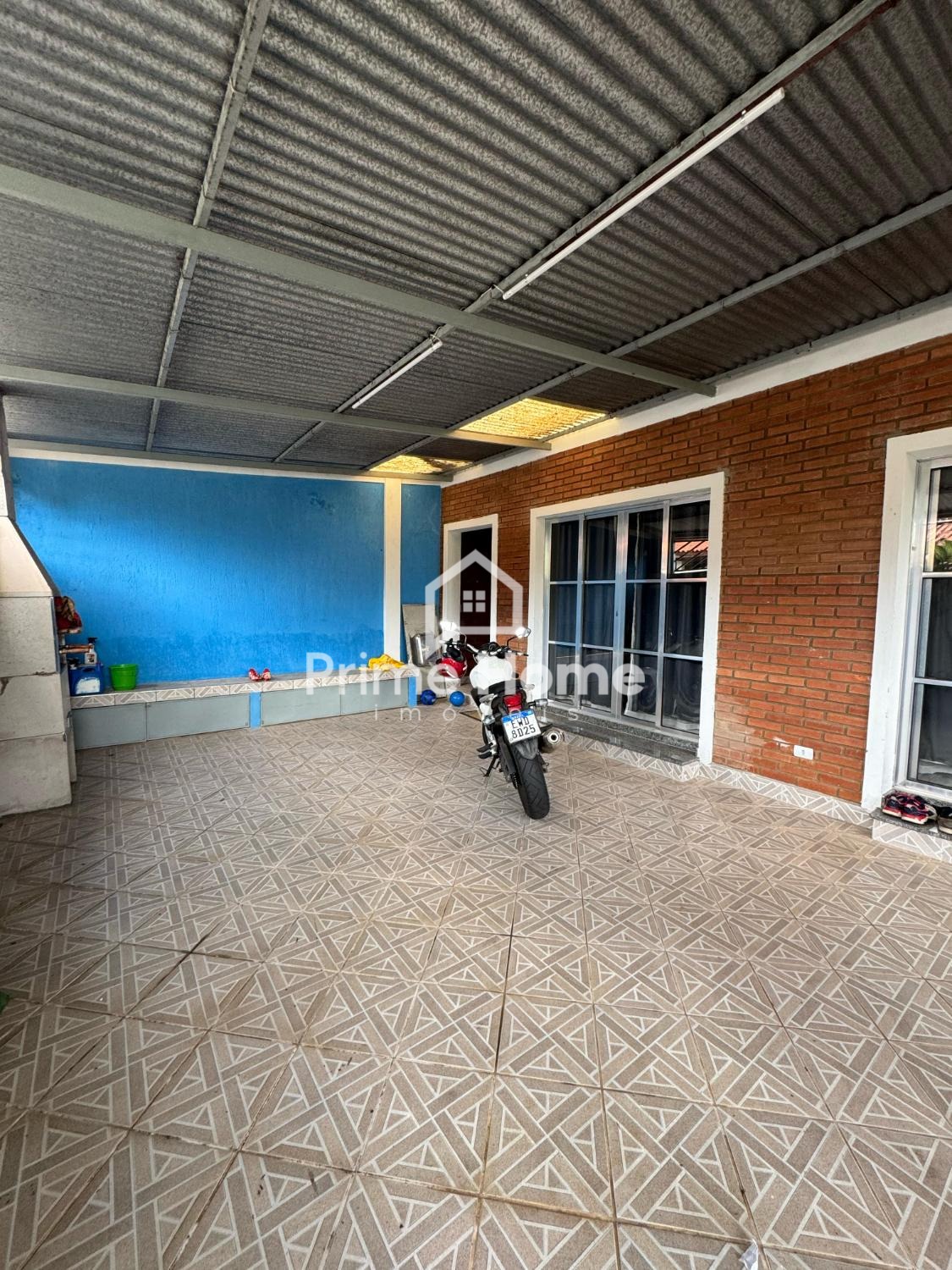 Possui uma garagem coberta para 2 carros, 2 quartos (sendo 1 suíte), banheiro social, cozinha completa com despensa e balcão, sala de jantar, sala de estar e área de serviço coberta, incluindo churrasqueira.