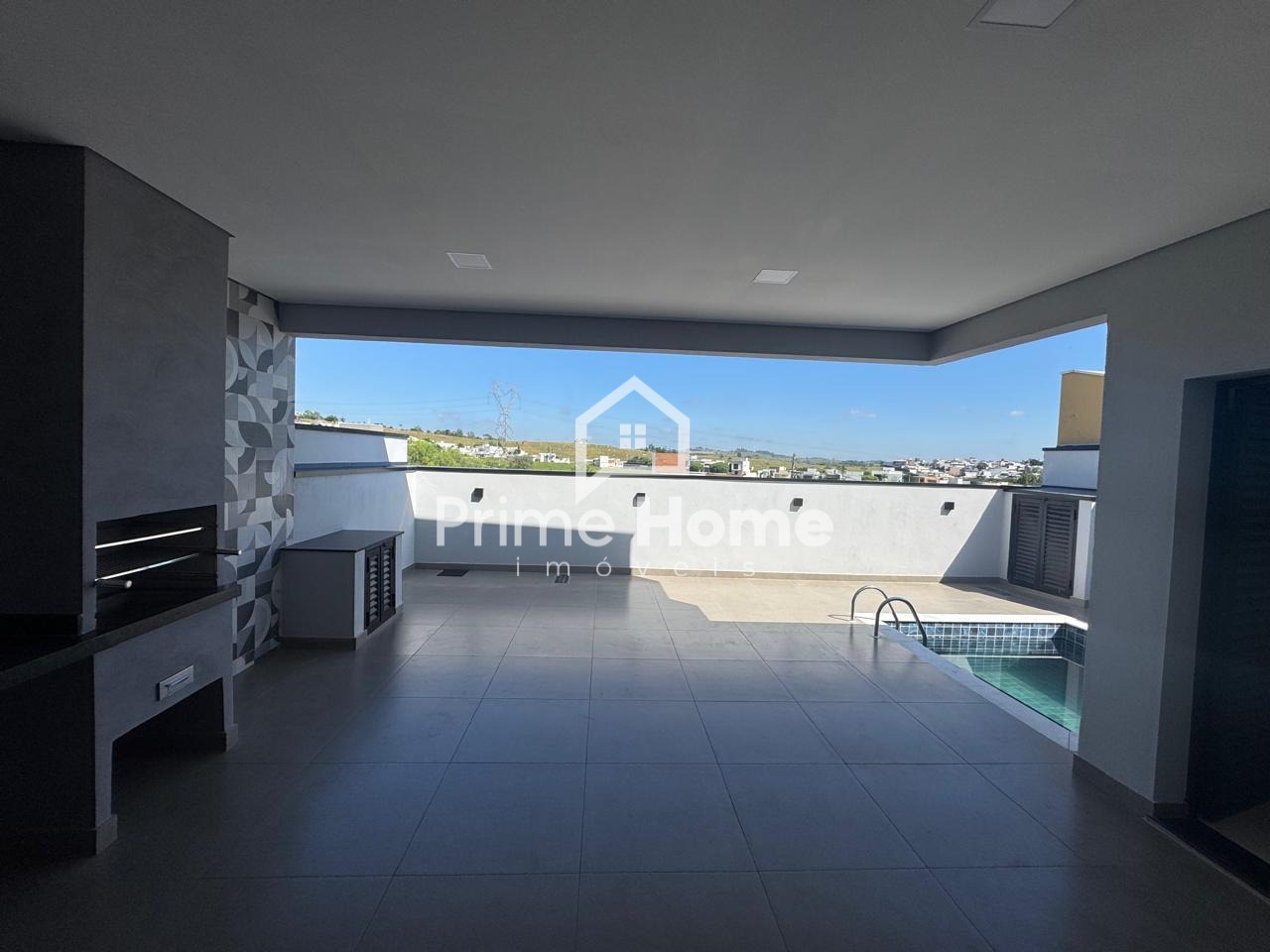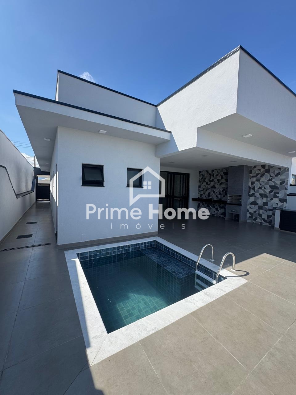 Conta com três dormitórios, sendo uma suíte, sala com pé-direito de 4,5 metros integrada à cozinha em estilo americano, despensa, banheiro social, lavabo, lavanderia, garagem coberta para dois carros e espaço gourmet com vista para o pôr do sol. A casa possui piscina, iluminação planejada, preparação para aquecimento de água e sistema de ar-condicionado, além de infraestrutura para câmeras de vigilância e ponto de recarga para carro elétrico na garagem.