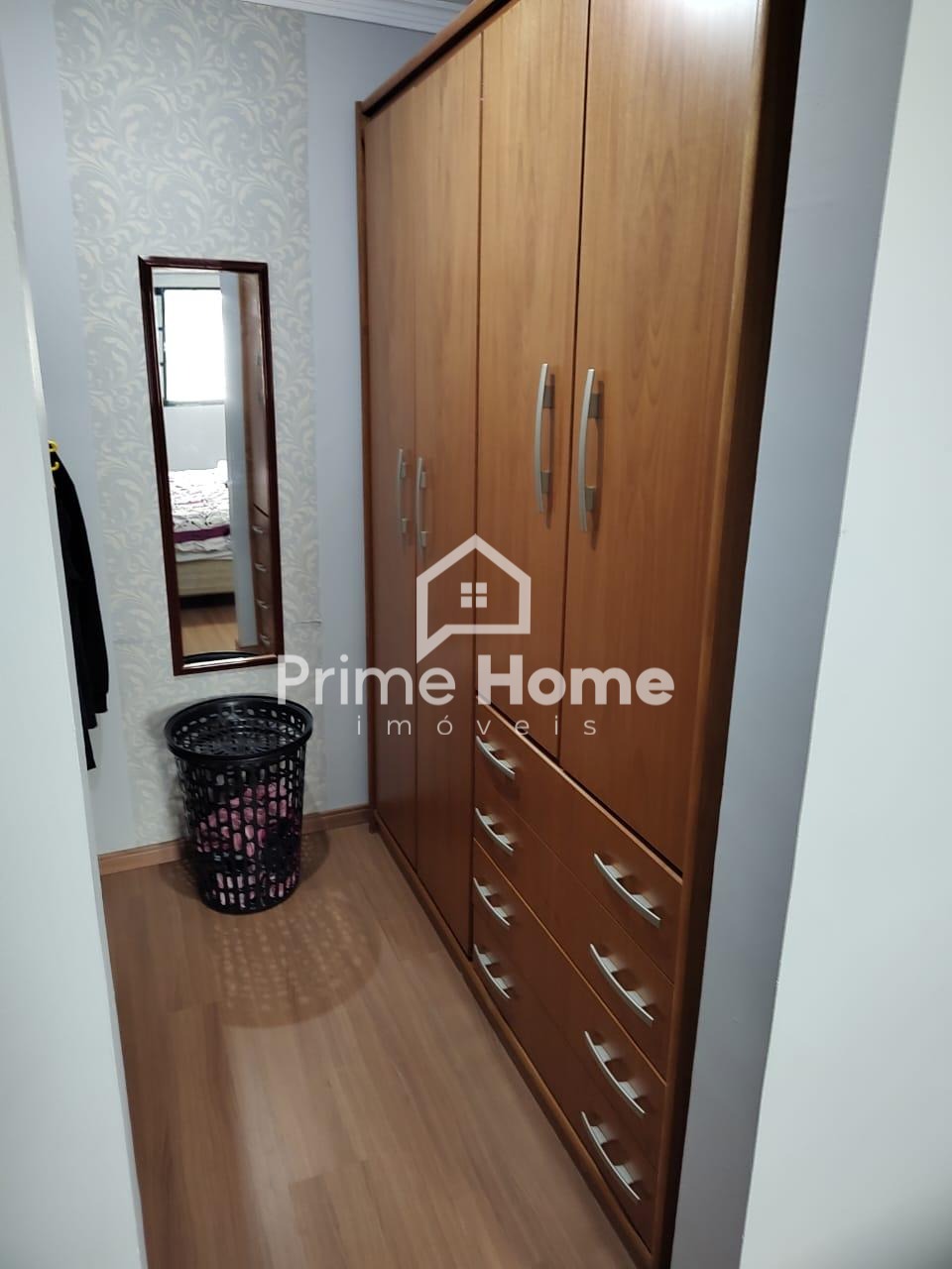 Ar-condicionado instalado nos dormitórios e na sala, acabamento de qualidade em piso cerâmico e laminado, duas vagas de garagem.
