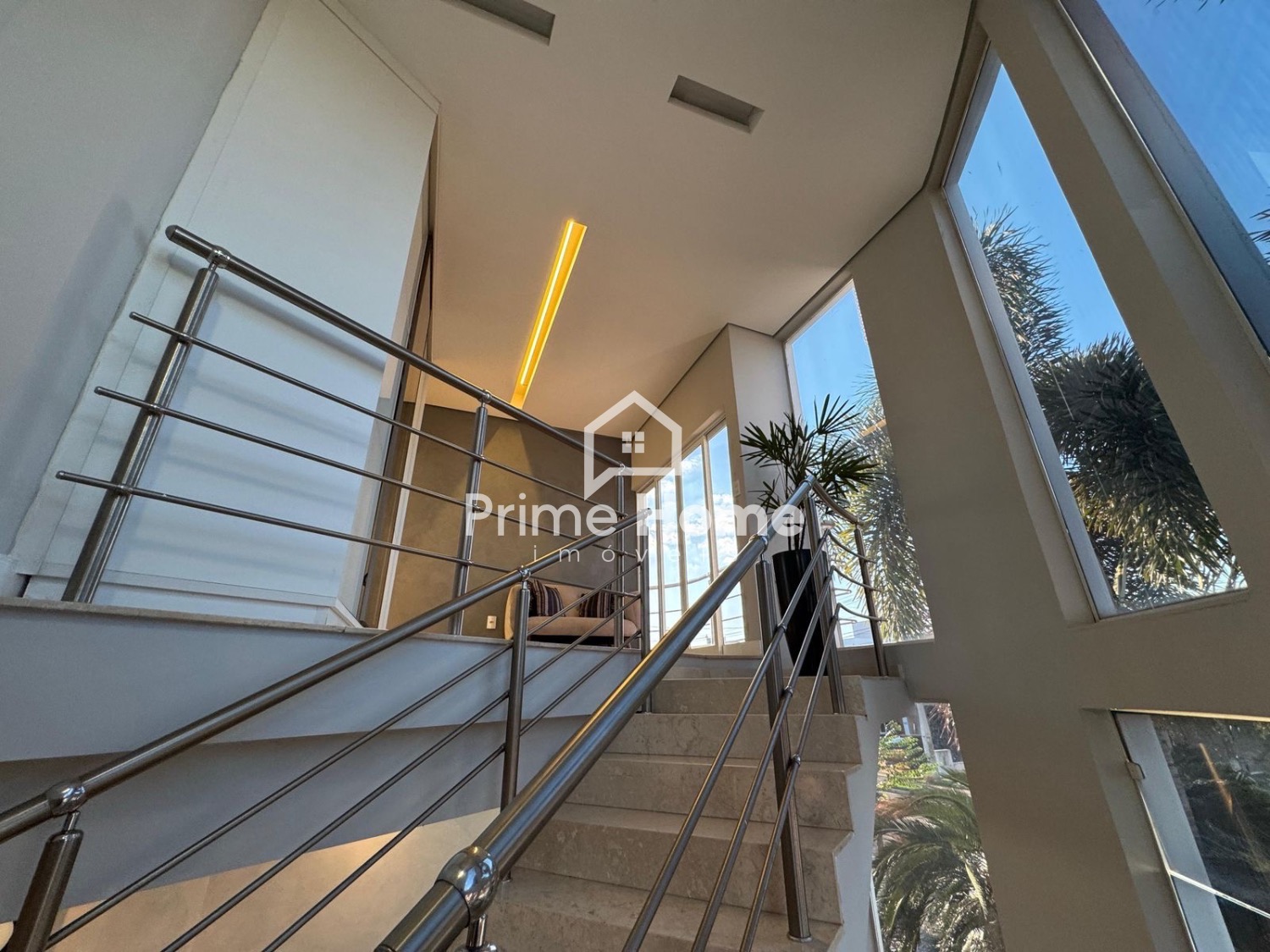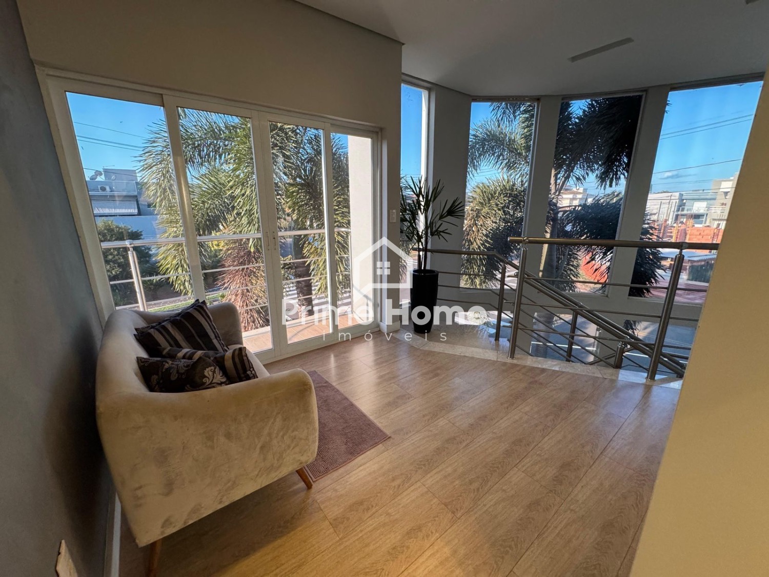 Sala de estar com pé-direito alto e excelente iluminação natural