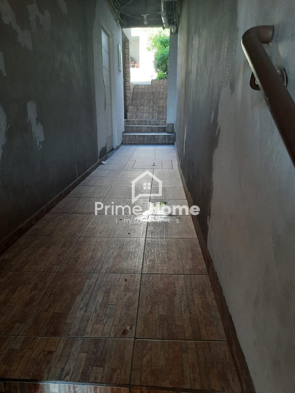 A 1ª casa (térreo) conta com salão de 50 m² e banheiro, atualmente alugada com contrato registrado.