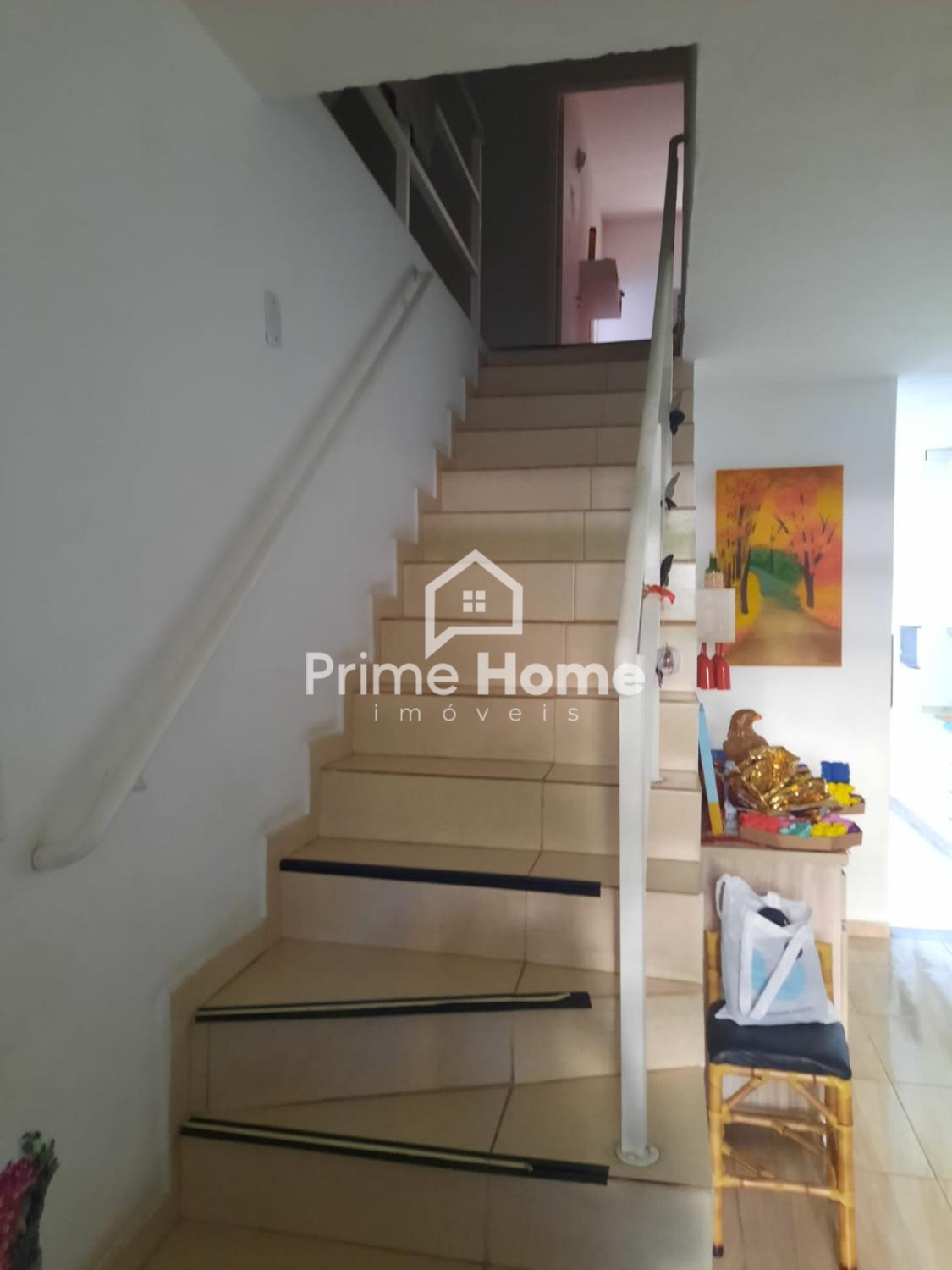 Destaque para a escada com cascata e o