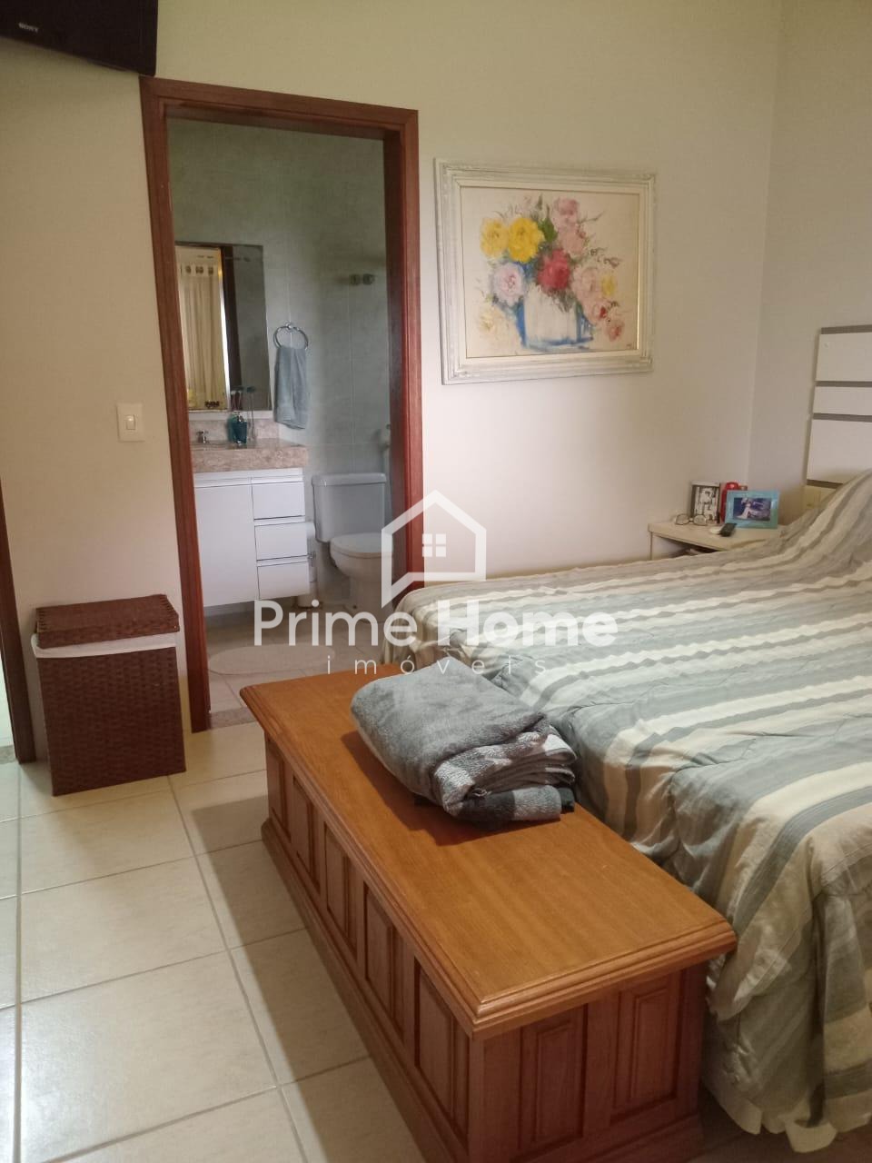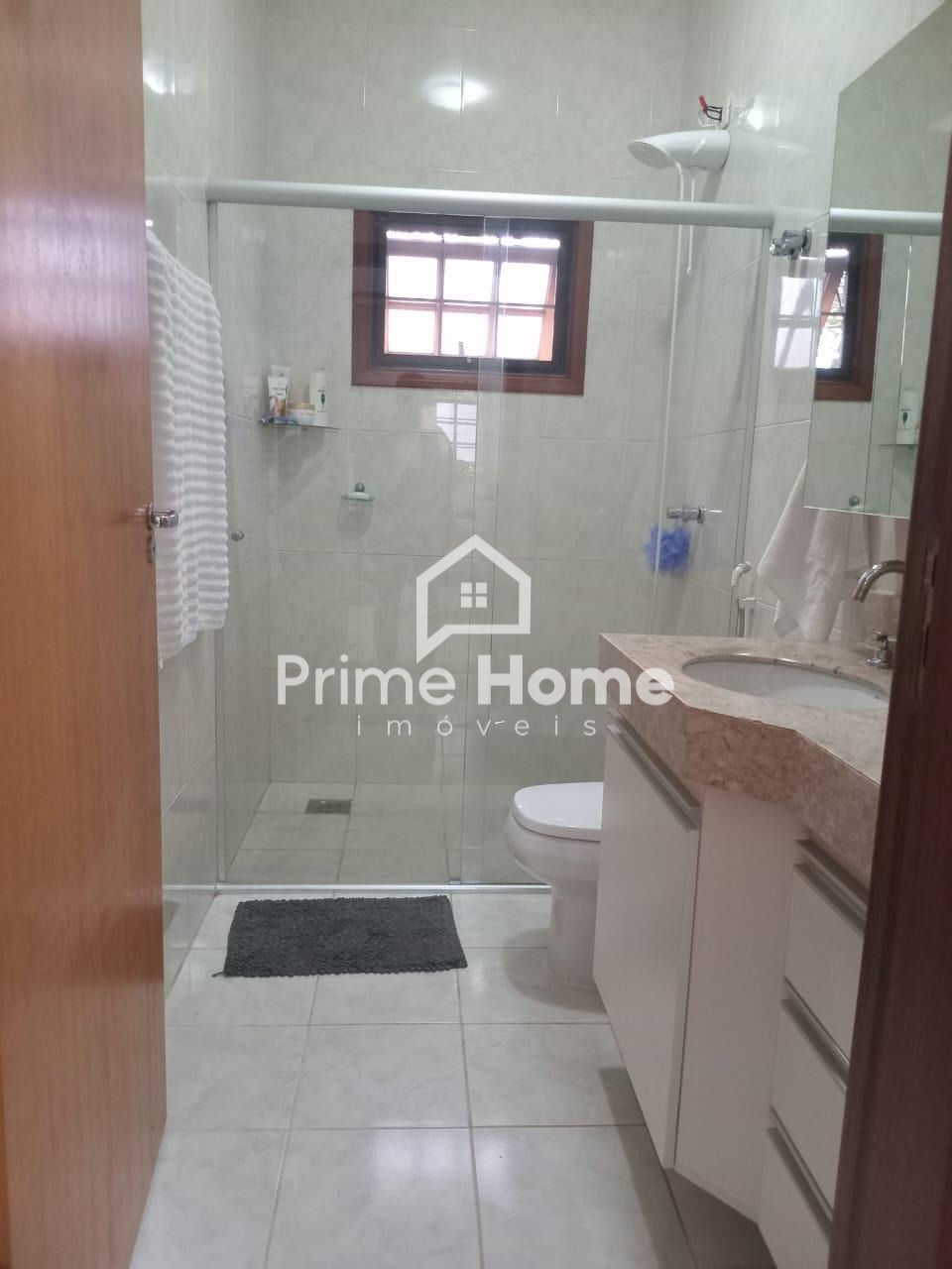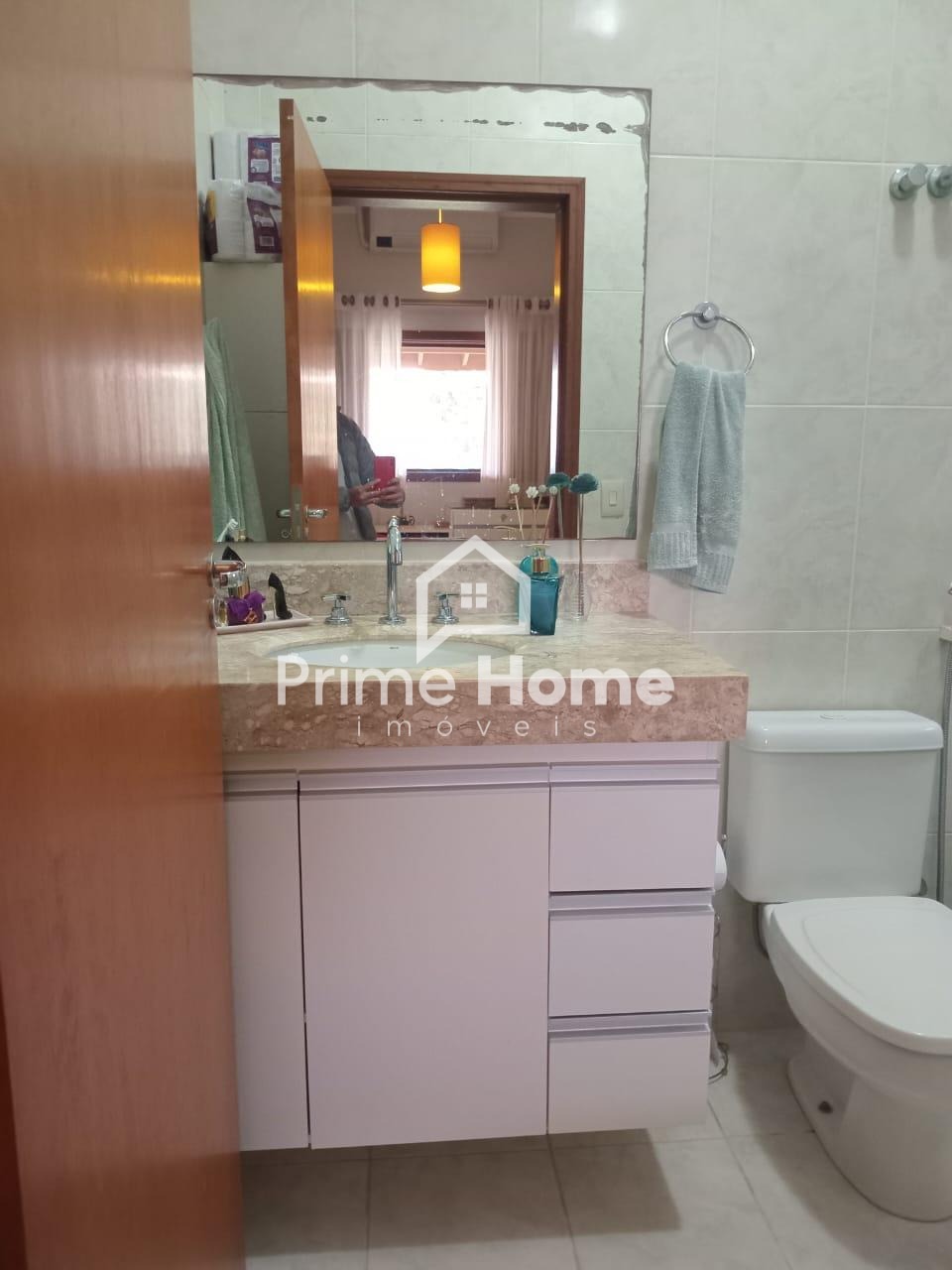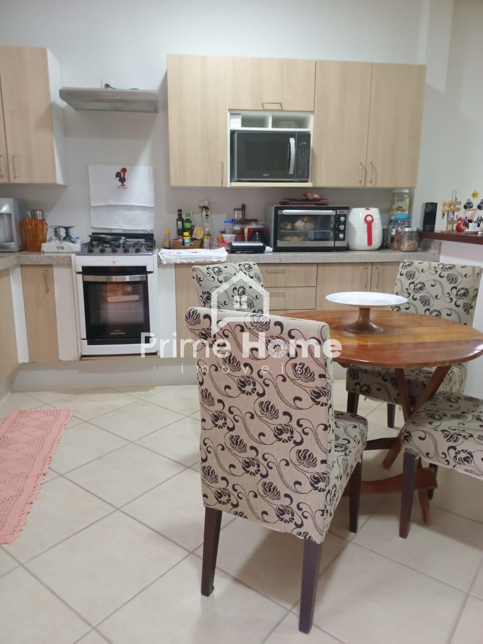 A casa oferece sala ampla com dois ambientes e ar-condicionado, cozinha americana com armários planejados, dois dormitórios com armários embutidos — sendo um deles suíte —, além de banheiro social com box e armário, e lavanderia funcional.
