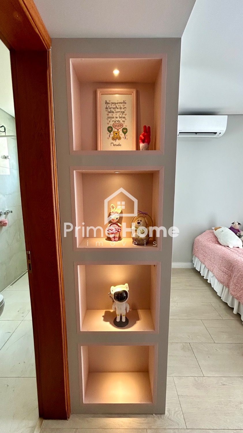 No andar superior, são três suítes espaçosas, todas com sacada e armários planejados. A suíte master possui closet e ar-condicionado Split Daikin de 12.000 BTUs. A suíte infantil também tem ar-condicionado e decoração temática. Os banheiros contam com acabamentos de alto padrão e estão prontos para receber chuveiros elétricos.