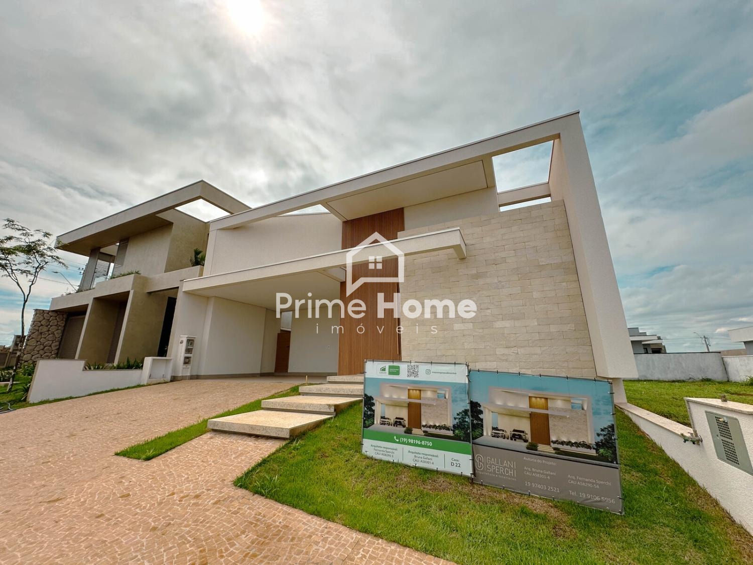 Casa térrea à venda no Residencial Santorini, em Paulínia/SP, com 213,78 m² de área construída em um terreno de 363,25 m². O imóvel conta com 4 suítes, 1 lavabo e 1 banheiro externo, totalizando 6 banheiros no total. Possui sala de estar e jantar integradas com pé direito duplo, cozinha planejada conectada à área gourmet, além de lavanderia com armários.