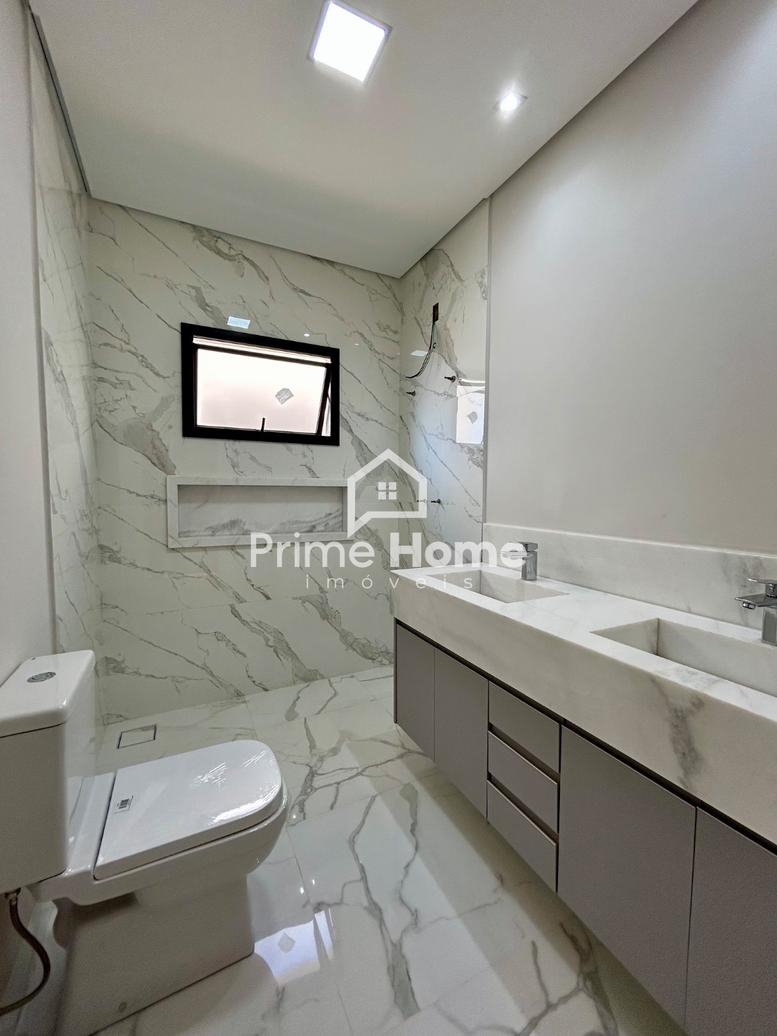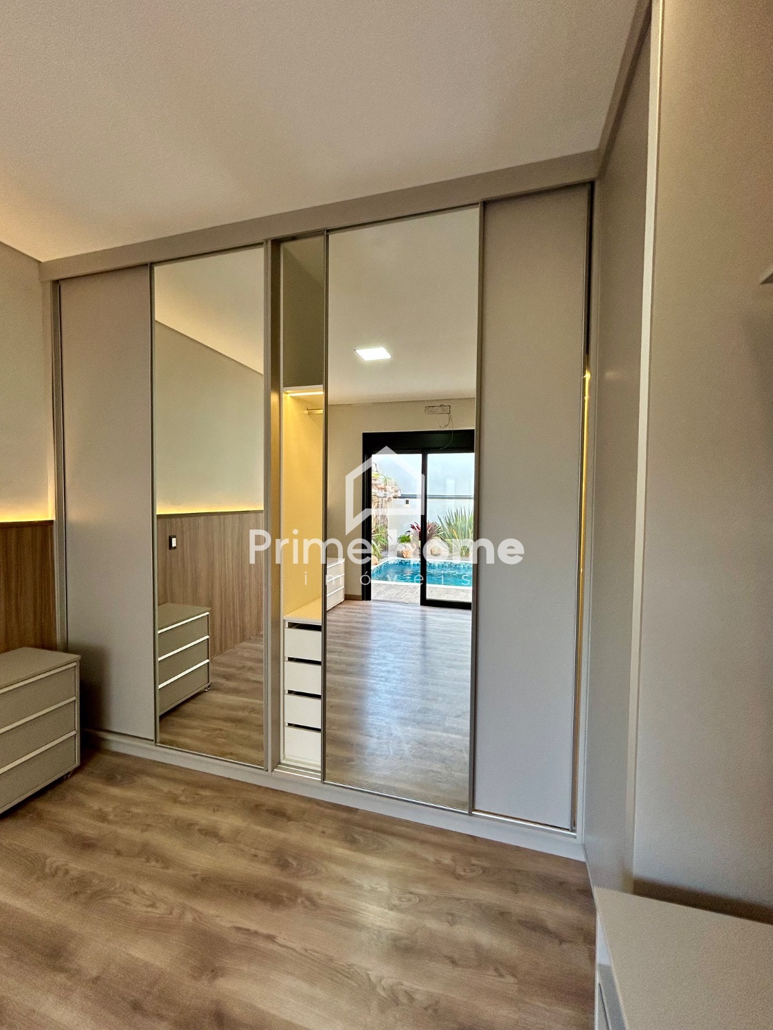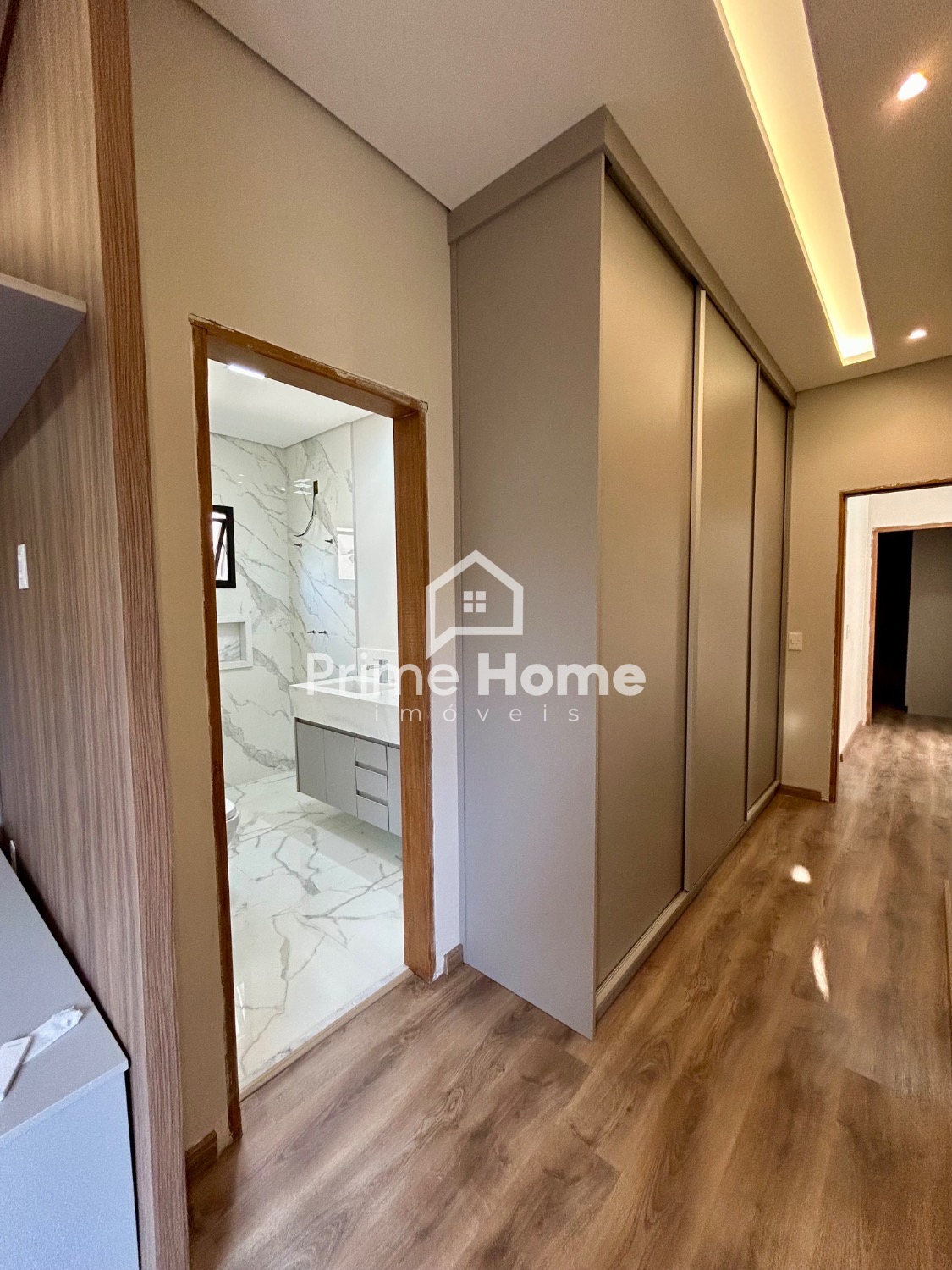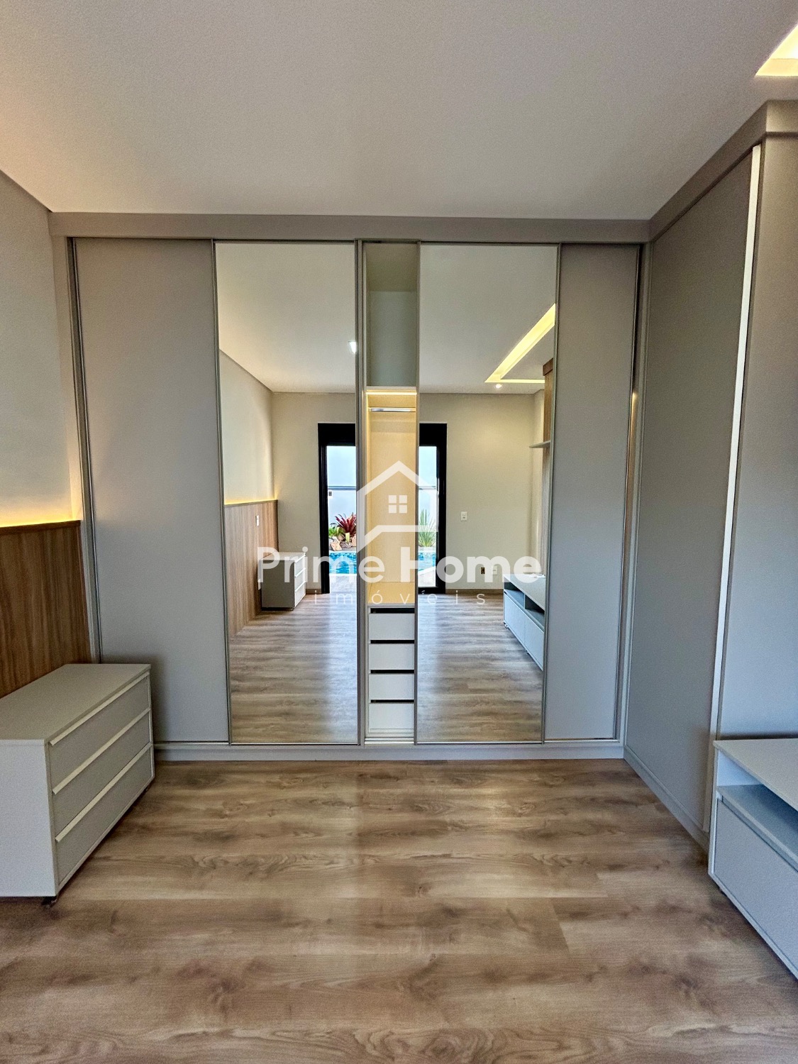 A área íntima conta com 3 suítes elegantes, todas equipadas com armários planejados, garantindo conforto, organização e privacidade para todos os moradores.
