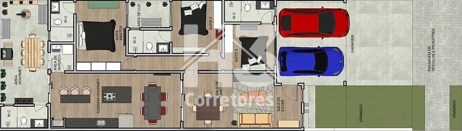 Casa térrea à venda, Parque Brasil 500, Paulínia. Venha morar com muita qualidade de vida , conforto e segurança nesta maravilhosa casa térrea com 195,08 m² AC, com projeto clean e funcional, ambientes integrados, com muita luz natural, o que confere extrema sensação de conforto. Dispõe de 3 suítes, salas de estar e jantar, cozinha gourmet com ilha ,varanda gourmet com banheiro de apoio, banheiro externo. 2 vagas cobertas. Será entregue com infra estrutura para ar condicionado, persianas automatizadas, aquecimento solar e marcenaria completa. Previsão de entrega dezembro/24. Condomínio com maravilhosa infra estrutura de lazer. Home 3 corretores.
