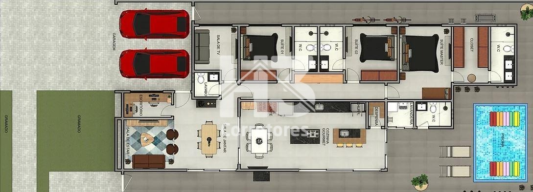 Casa térrea, à venda, Jardim América, Paulínia. Pensando em proporcionar conforto, funcionalidade e extremo bem estar aos futuros moradores, este projeto foi desenvolvido para atender tudo isso e muito mais. Com 209,93 m² de área construída, esta belíssima casa térrea tem projeto clean, ambientes integados e bem iluminados e possui salas de estar, jantar e TV integradas, cozinha americana com ilha integrada ao gourmet, despensa, escritório, lavabo . A área íntima conta com 3 suítes, sendo a master com closet. O lazer conta com uma excelente piscina com wc de apoio. Será entregue com marcenaria completa, ar condicionado e persianas automatizadas. O condomínio oferece ótima infra estrutura de lazer. Previsão de entrega abril/24. Home 3 Corretores.