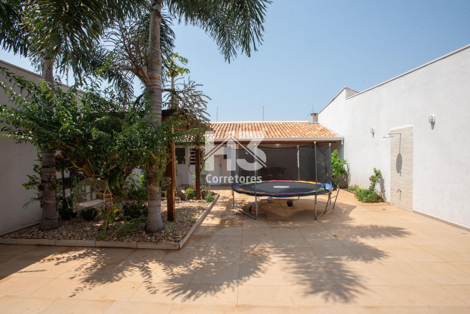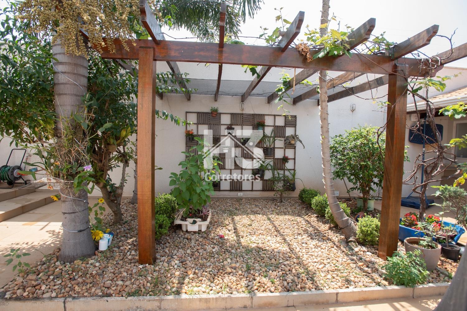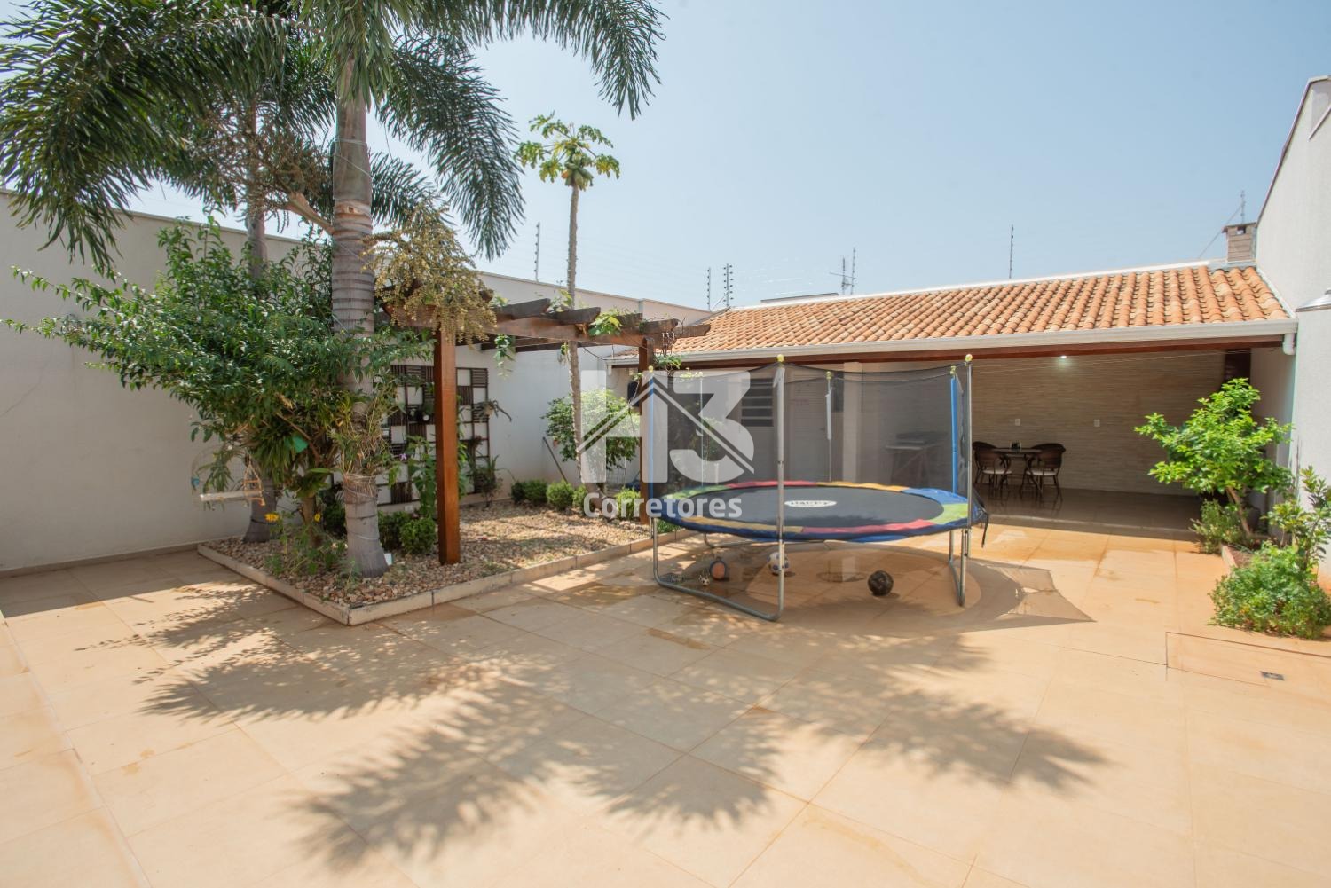 No piso inferior, a casa impressiona com uma garagem coberta para dois carros, uma sala de jantar acolhedora, uma cozinha americana moderna e uma sala de TV e estar ampla e iluminada. A varanda com toldos é o local ideal para relaxar, enquanto o jardim com pergolado e o espaço para uma futura piscina prometem momentos inesquecíveis de lazer.
