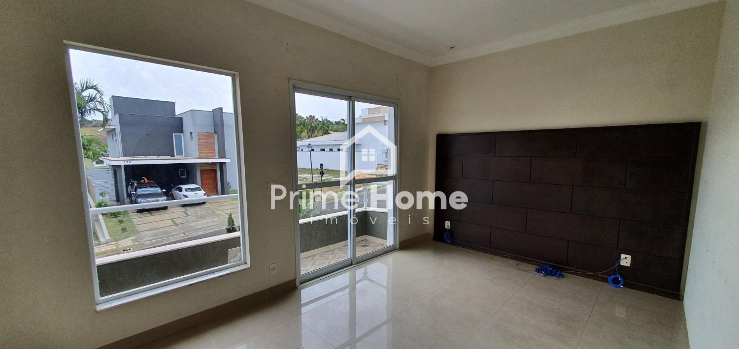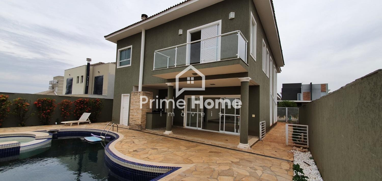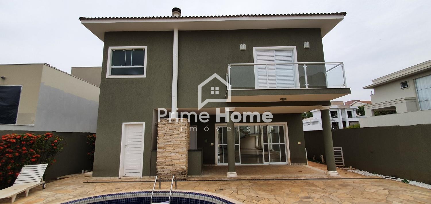 Sobrado no Condomínio Vila Paradiso, em Indaiatuba. O imóvel conta com 420m² de terreno e 322,98m² de área construída, distribuídos em 3 dormitórios, 4 banheiros, sala, cozinha, área de serviço e 2 vagas de garagem. Possui móveis planejados, área gourmet e piscina.