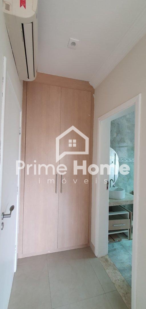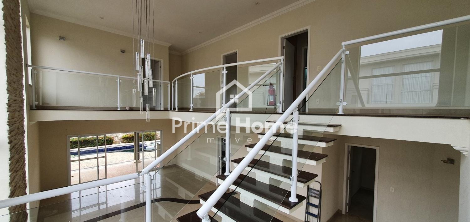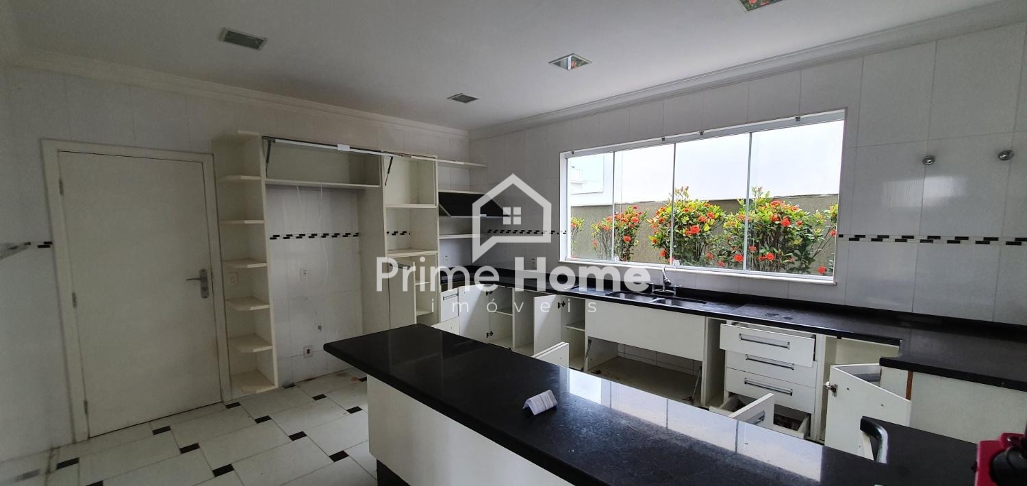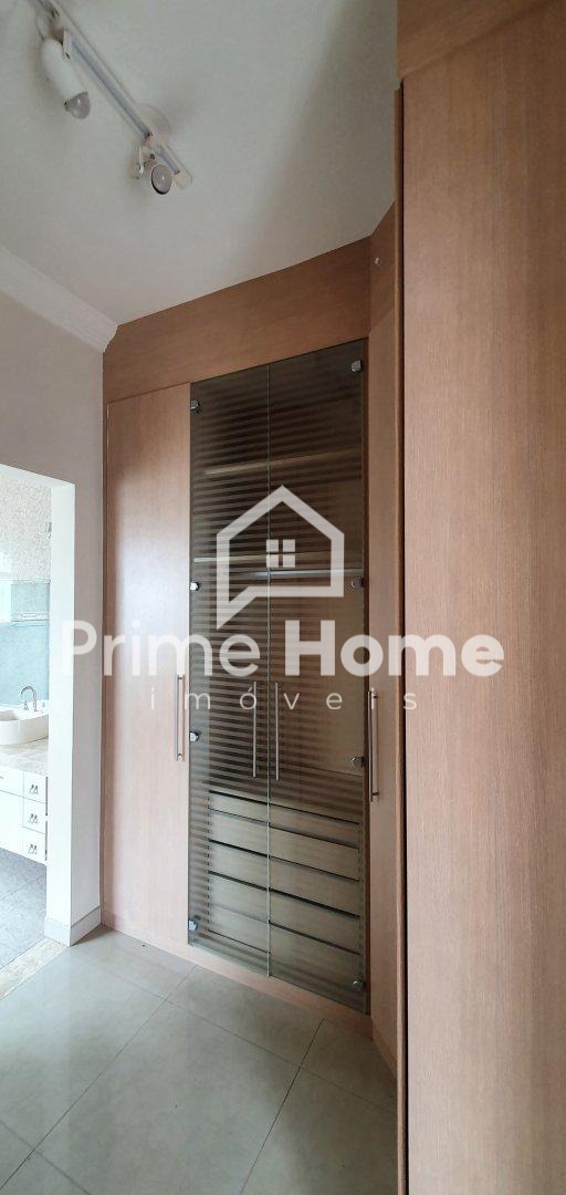 Sobrado no Condomínio Vila Paradiso, em Indaiatuba. O imóvel conta com 420m² de terreno e 322,98m² de área construída, distribuídos em 3 dormitórios, 4 banheiros, sala, cozinha, área de serviço e 2 vagas de garagem. Possui móveis planejados, área gourmet e piscina.