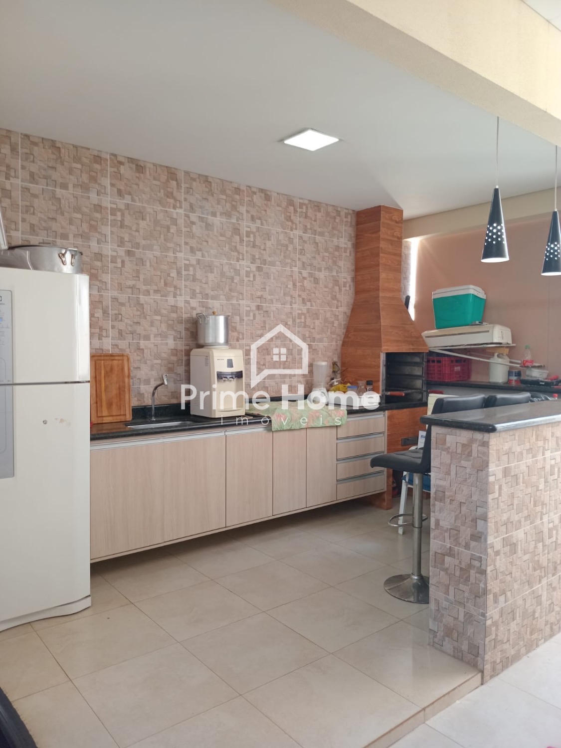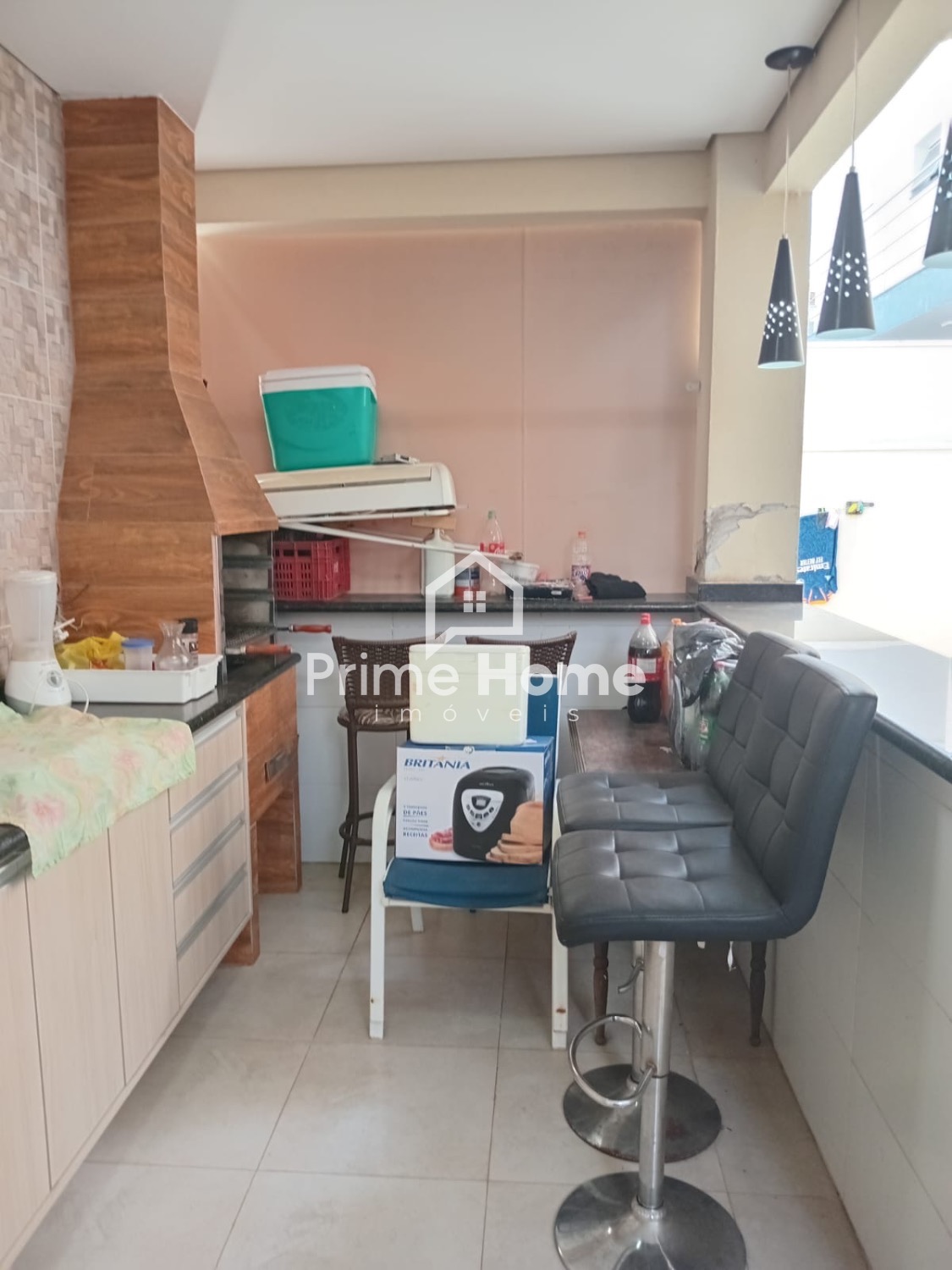 • Churrasqueira, armários e balcão em pedra