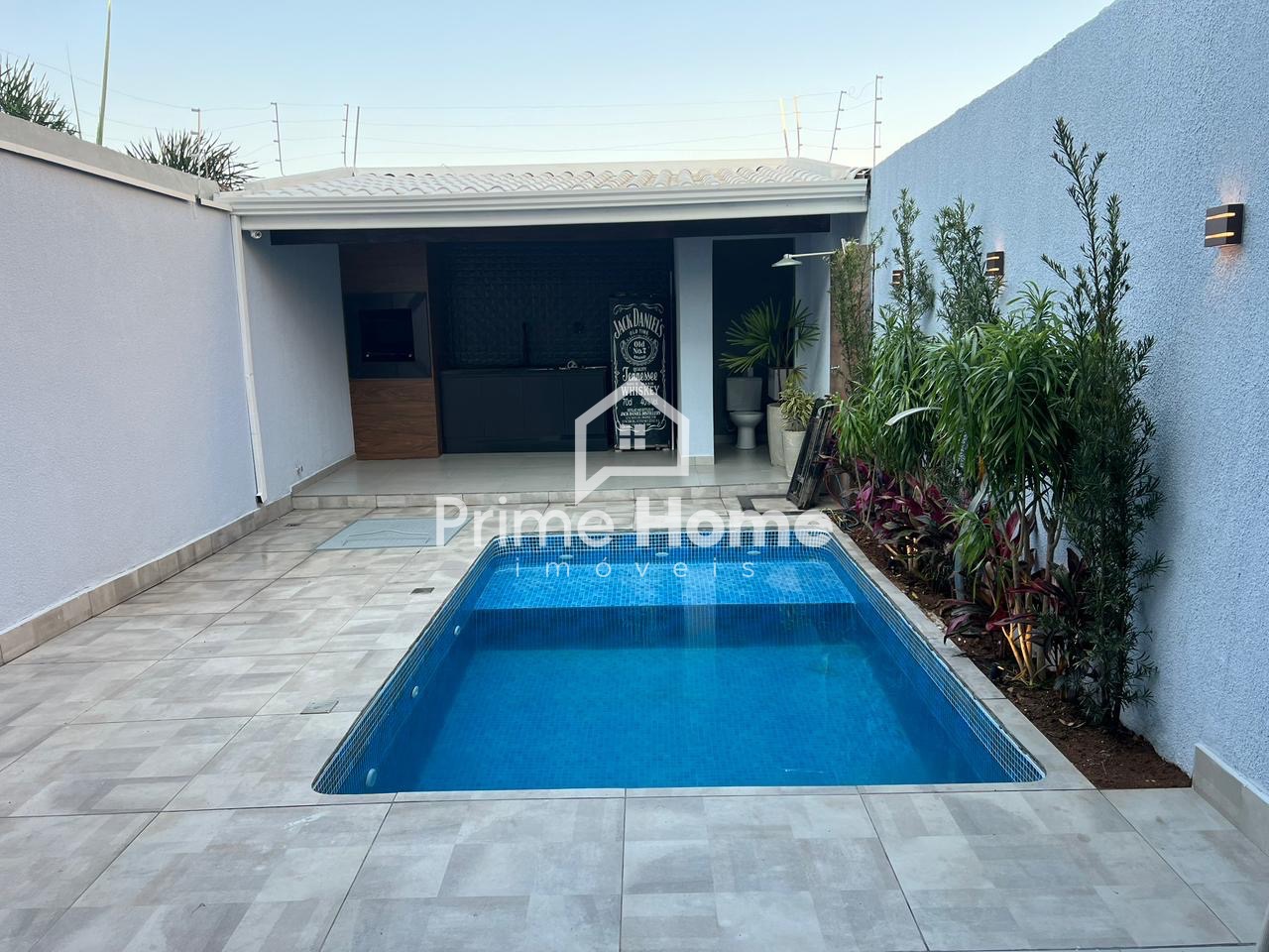 Garagem 2 carros, portão eletrônico, área gourmet com churrasqueira, piscina, esquadrias alumínio, portas com controle, piso porcelanato na sala e cozinha, piso laminado nos dormitórios.