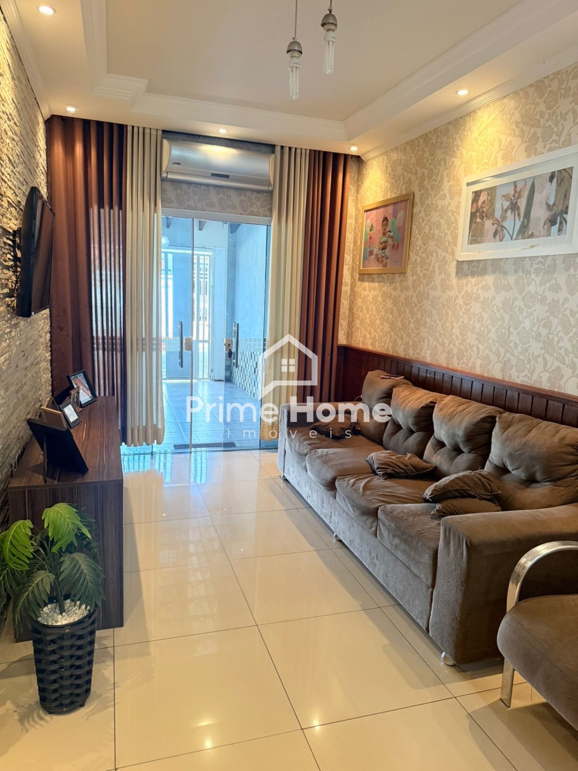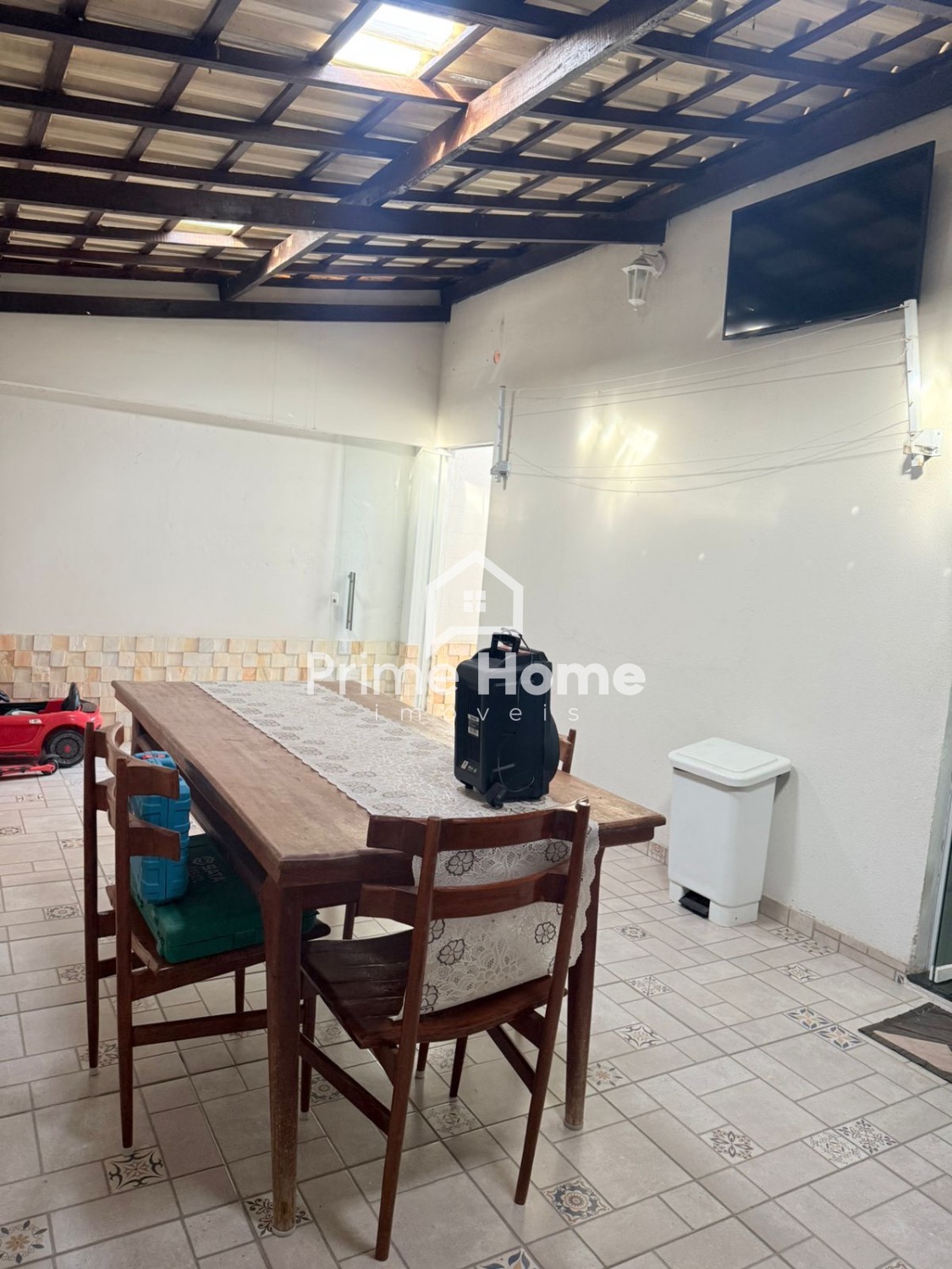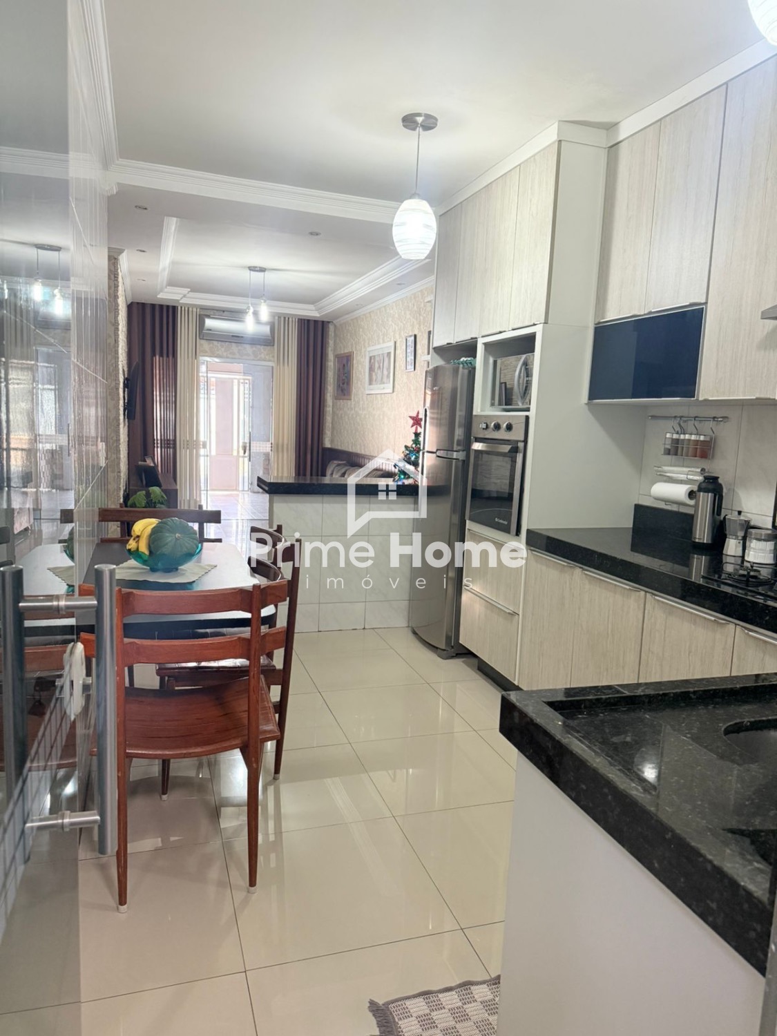 Casa no Residencial Cosmos, com sala com cozinha americana, área de serviço, banheiro social, 3 dormitórios, quintal no fundo com área gourmet e quintal na frente com 3 vagas.