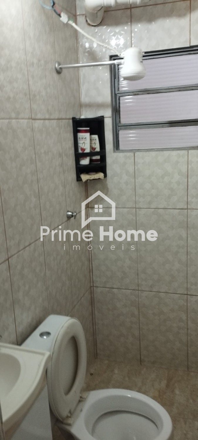 No piso térreo, há uma sala ampla para 2 ambientes, lavabo, 2 dormitórios, sendo 1 suíte, e na parte externa, 1 vaga de garagem, além de 1 sala e 1 banheiro usada para trabalho, podendo ampliar a garagem para 2 vagas.