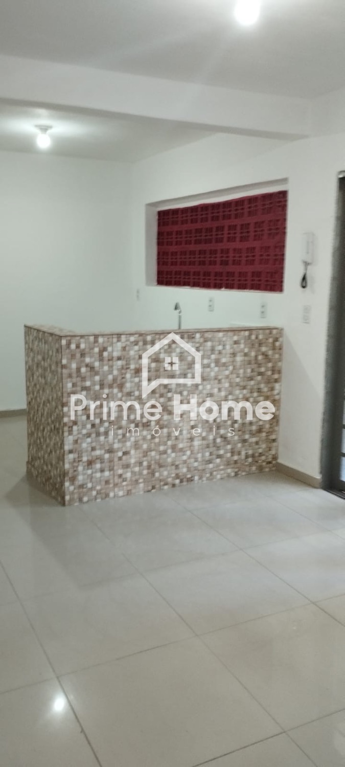 O piso inferior conta com cozinha ampla, 1 banheiro, 2 dormitórios e área de serviço coberta.