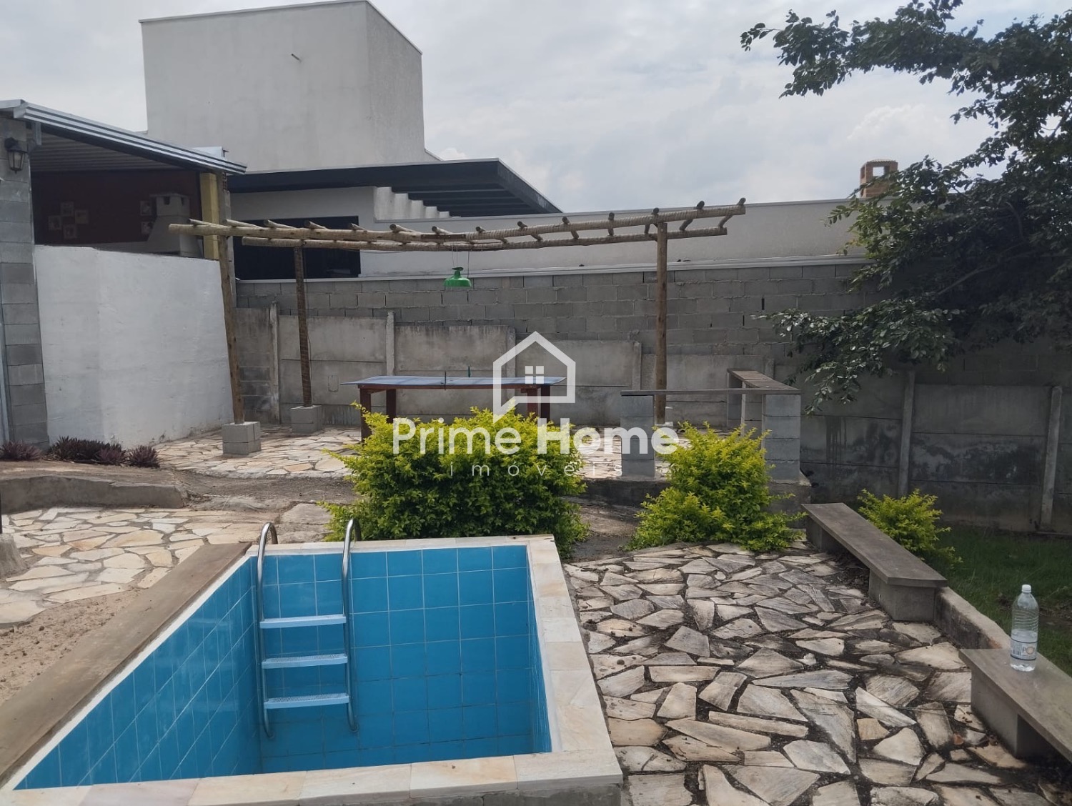 Casa à venda no Condomínio Sítio do Lago, no bairro Campinas, em Hortolândia. Imóvel térreo com terreno de 500 m² e aproximadamente 70 m² de área construída, situado em ponto alto do condomínio, com vista privilegiada para o lago. A propriedade conta com área de churrasqueira, um quarto com banheiro, um banheiro social e um cômodo adicional com banheiro independente. Dispõe ainda de quadra de vôlei, piscina de 3x2 metros, pomar e pergolado com mesa de tênis de mesa, proporcionando excelente estrutura para lazer e convivência. Na taxa de condomínio já estão inclusos os custos de água e energia elétrica. Imóvel não aceita financiamento.