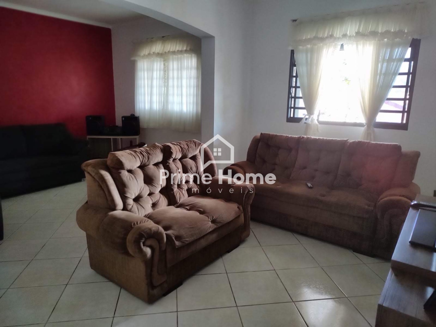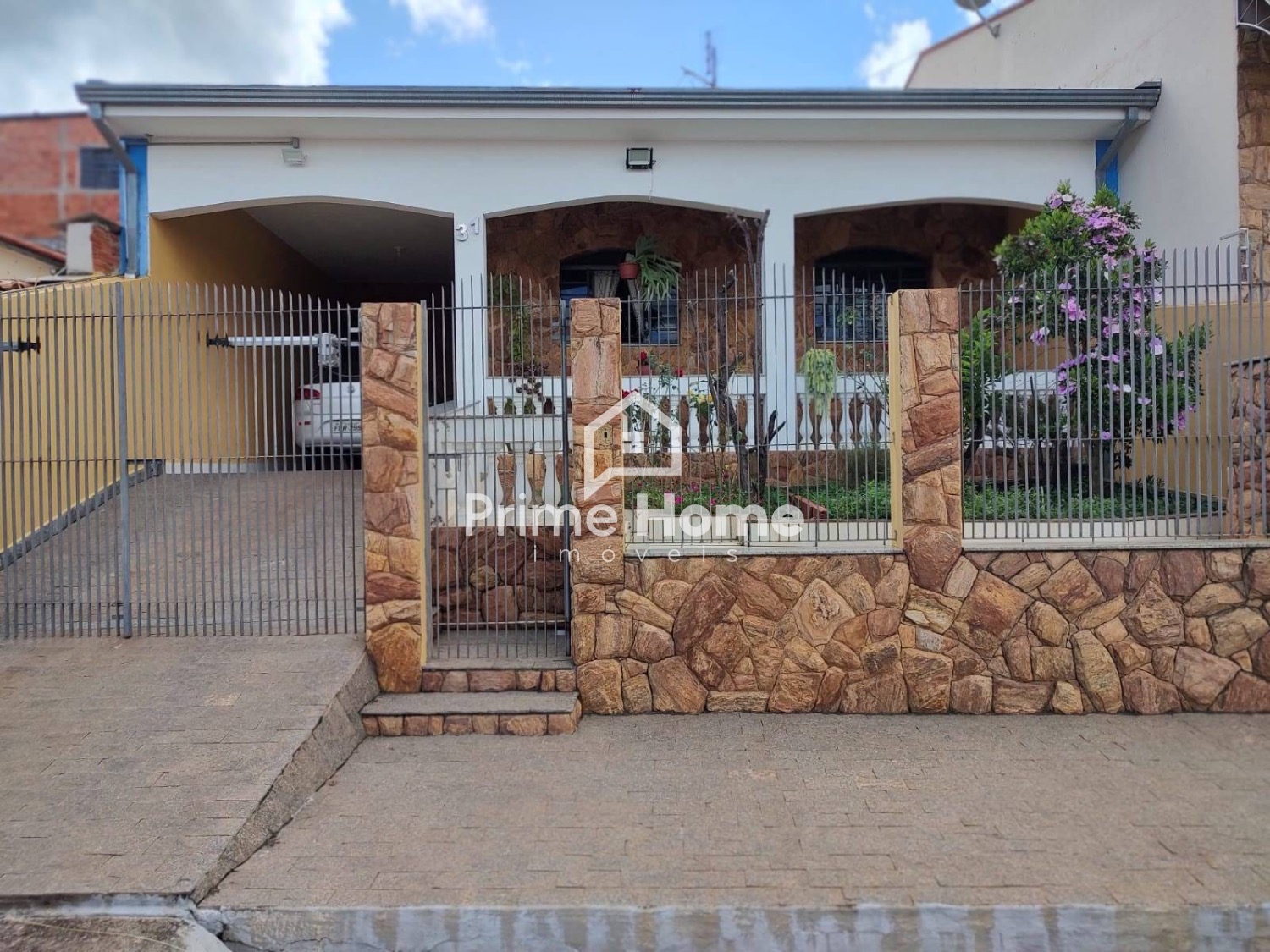 Casa térrea com 300 m² de terreno e 154 m² de área construída. Sala ampla com 2 ambientes, cozinha com gabinete, 3 dormitórios, 2 banheiros, 2 vagas de garagem e quintal com área verde.