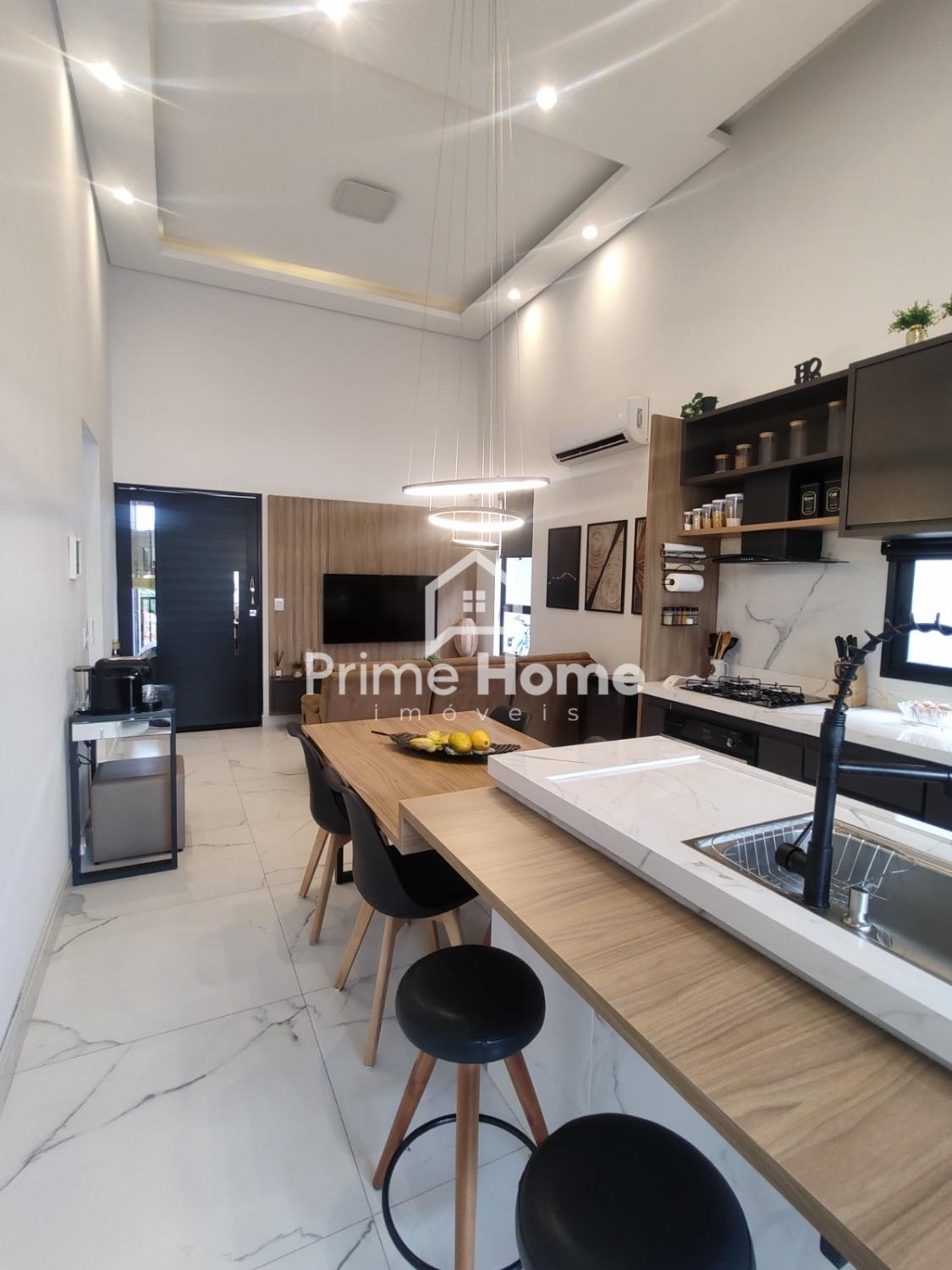 Casa térrea moderna no Condomínio Reserva da Mata, pronta para morar. São 130 m² de construção em terreno de 200 m², com excelente aproveitamento dos espaços e acabamentos de alto padrão. O imóvel conta com três dormitórios, sendo uma suíte com amplo closet, todos com móveis planejados. A área social é integrada, com sala e cozinha em conceito moderno, ilha central, mesa integrada e balcão para refeições, além de cooktop, coifa e forno a gás. A área gourmet é completa, com churrasqueira, cooktop, mesa de jantar e acesso lateral independente. O pé-direito alto e o projeto de iluminação garantem amplitude, sofisticação e ótima iluminação natural. Para maior conforto, a casa possui aquecimento solar, climatização e SPA aquecido com hidromassagem, proporcionando lazer e relaxamento com privacidade. Imóvel impecável, funcional e contemporâneo, ideal para quem busca qualidade de vida, segurança e tranquilidade em condomínio bem localizado.
