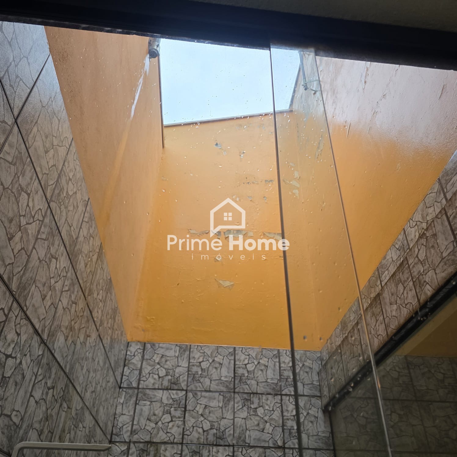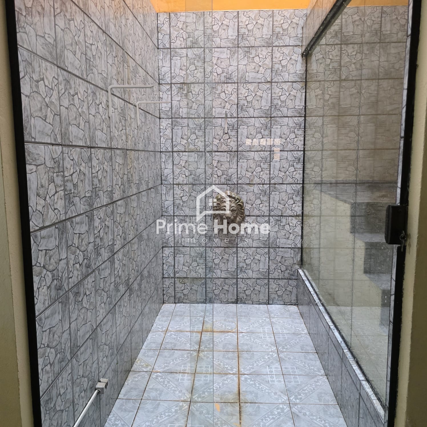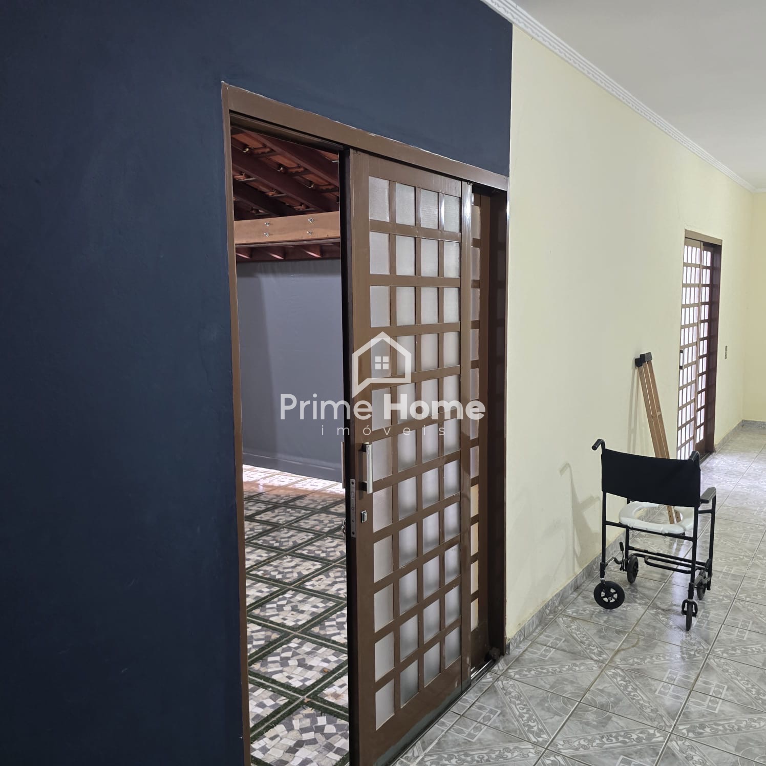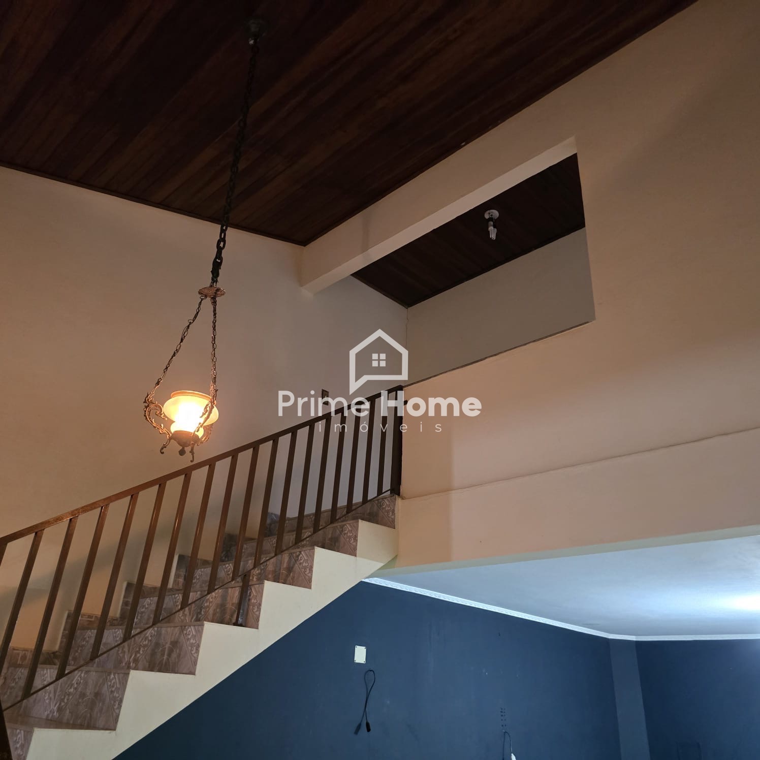 Andar inferior: salas amplas com 3 ambientes, jardim de inverno, 2 dormitórios sem armários, 1 banheiro social com box e gabinete, cozinha com gabinete e copa, lavanderia coberta e despensa ou guarda-volumes, área gourmet com churrasqueira e pia.