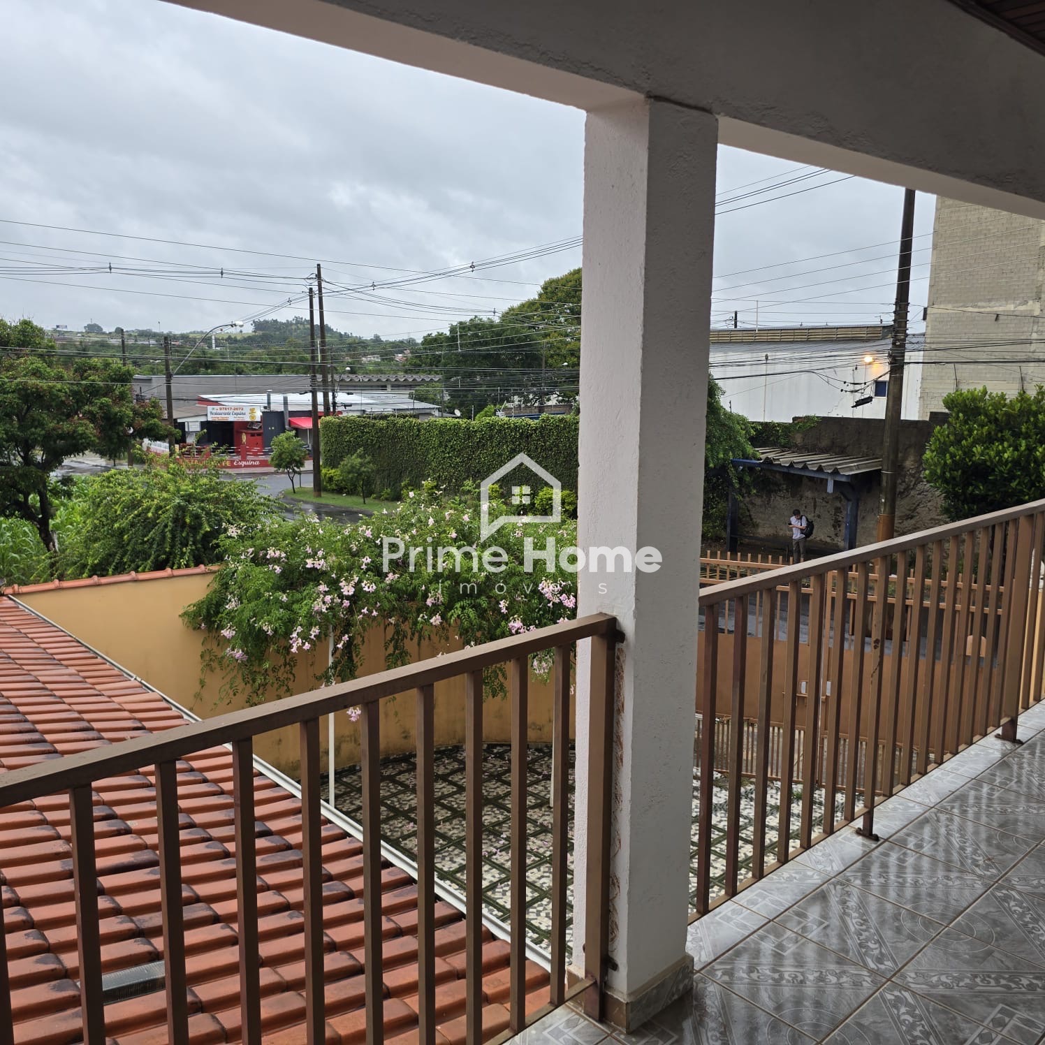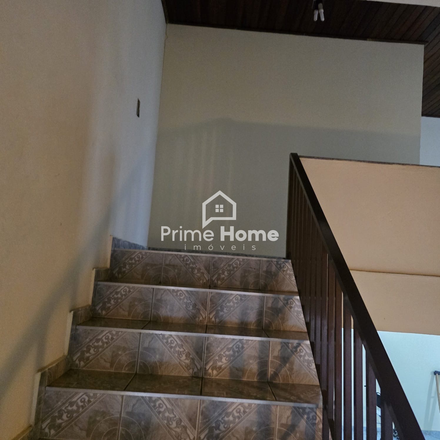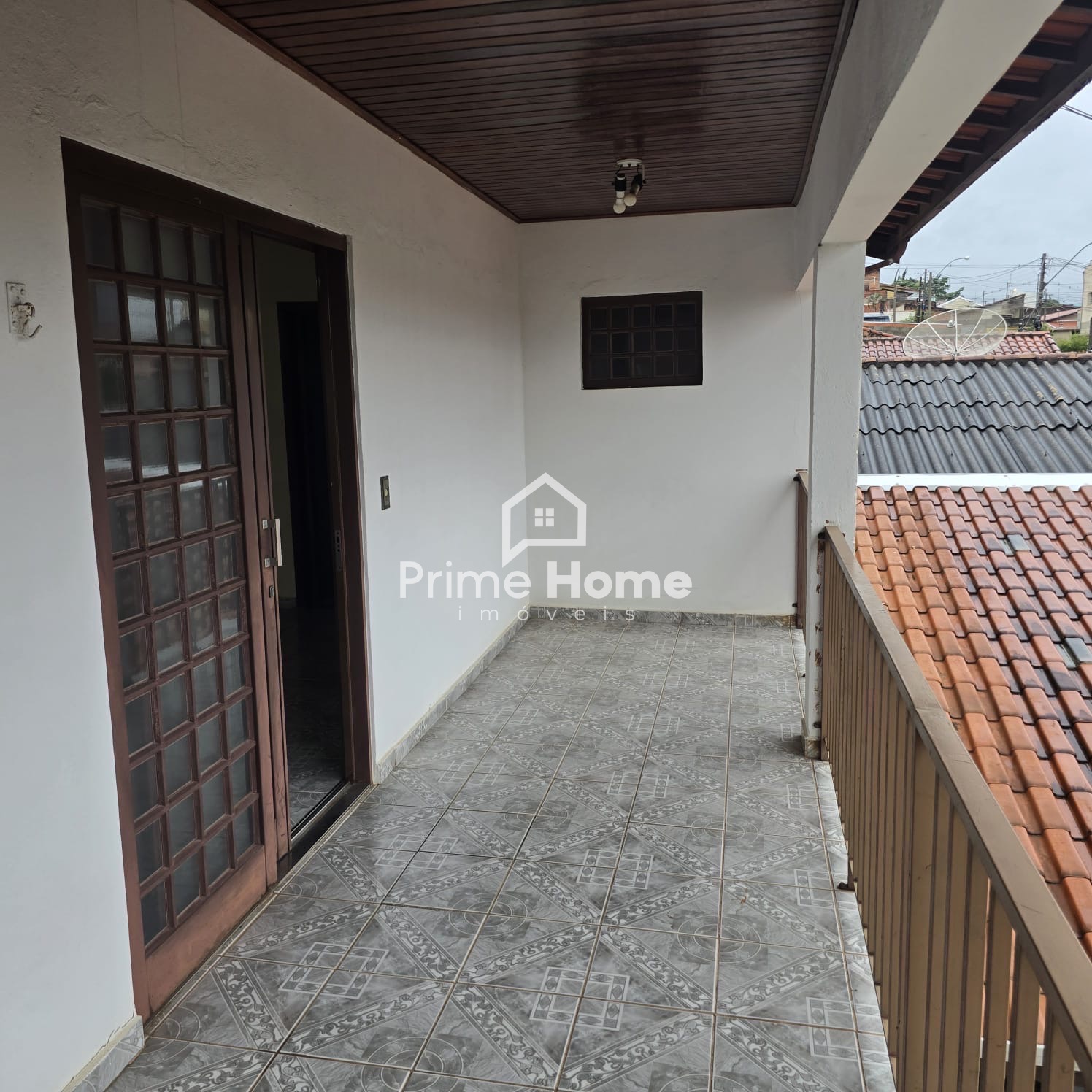 Andar superior: banheiro social, quarto sem armário e varanda ampla.