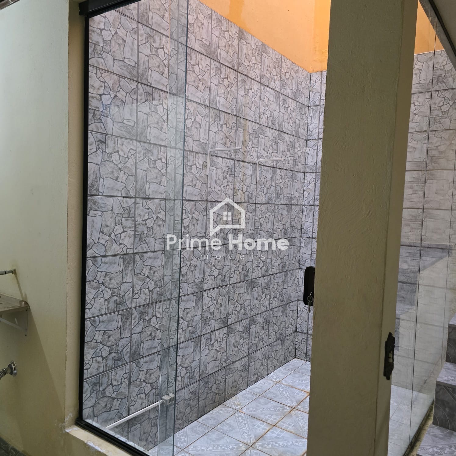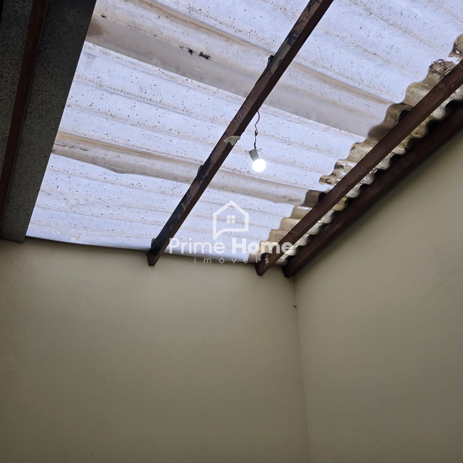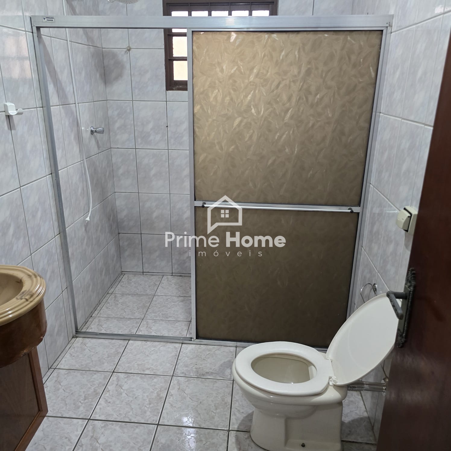 Andar superior: banheiro social, quarto sem armário e varanda ampla.