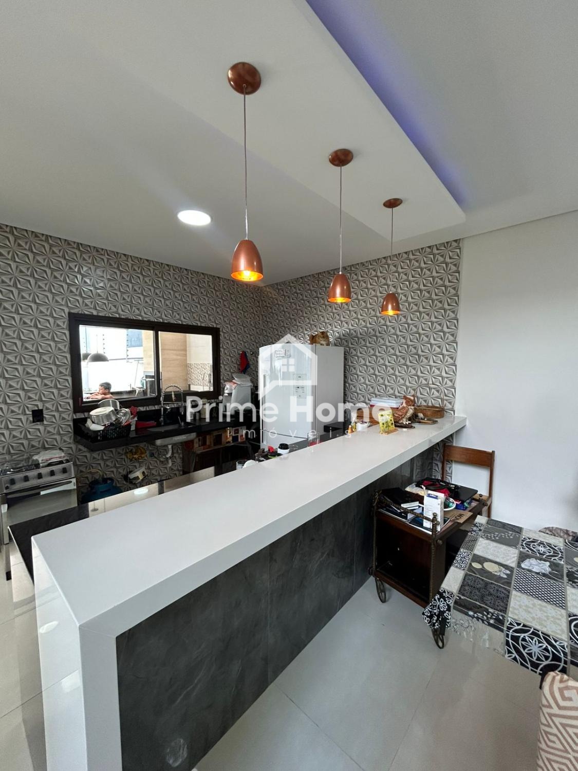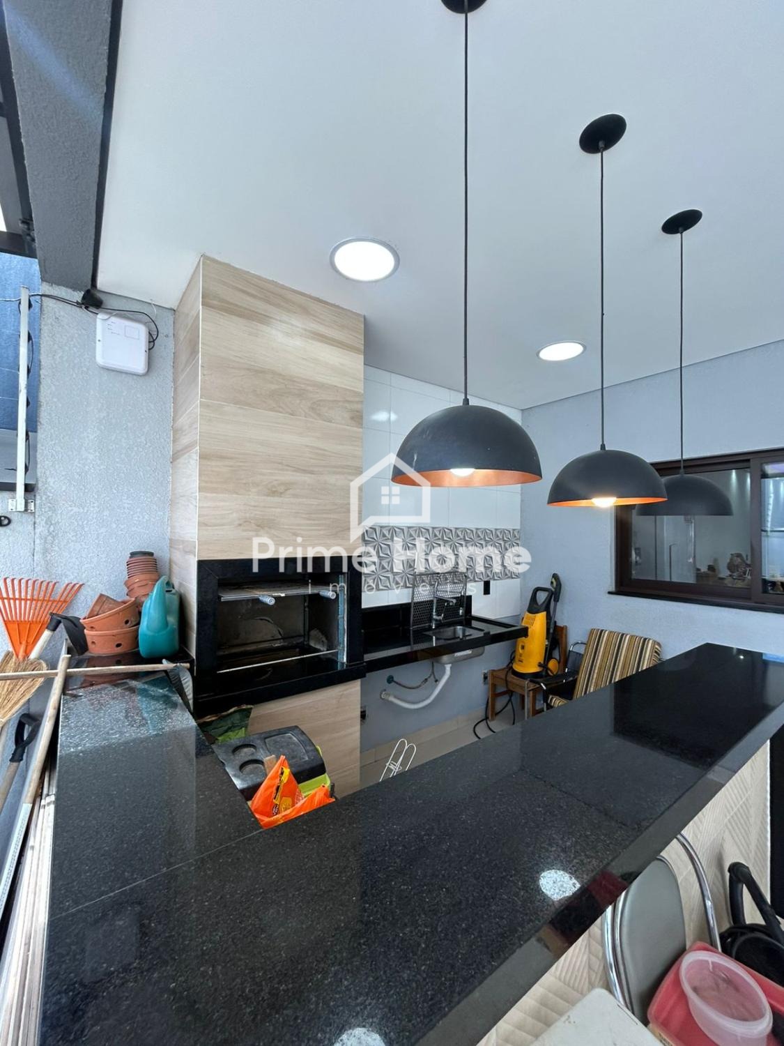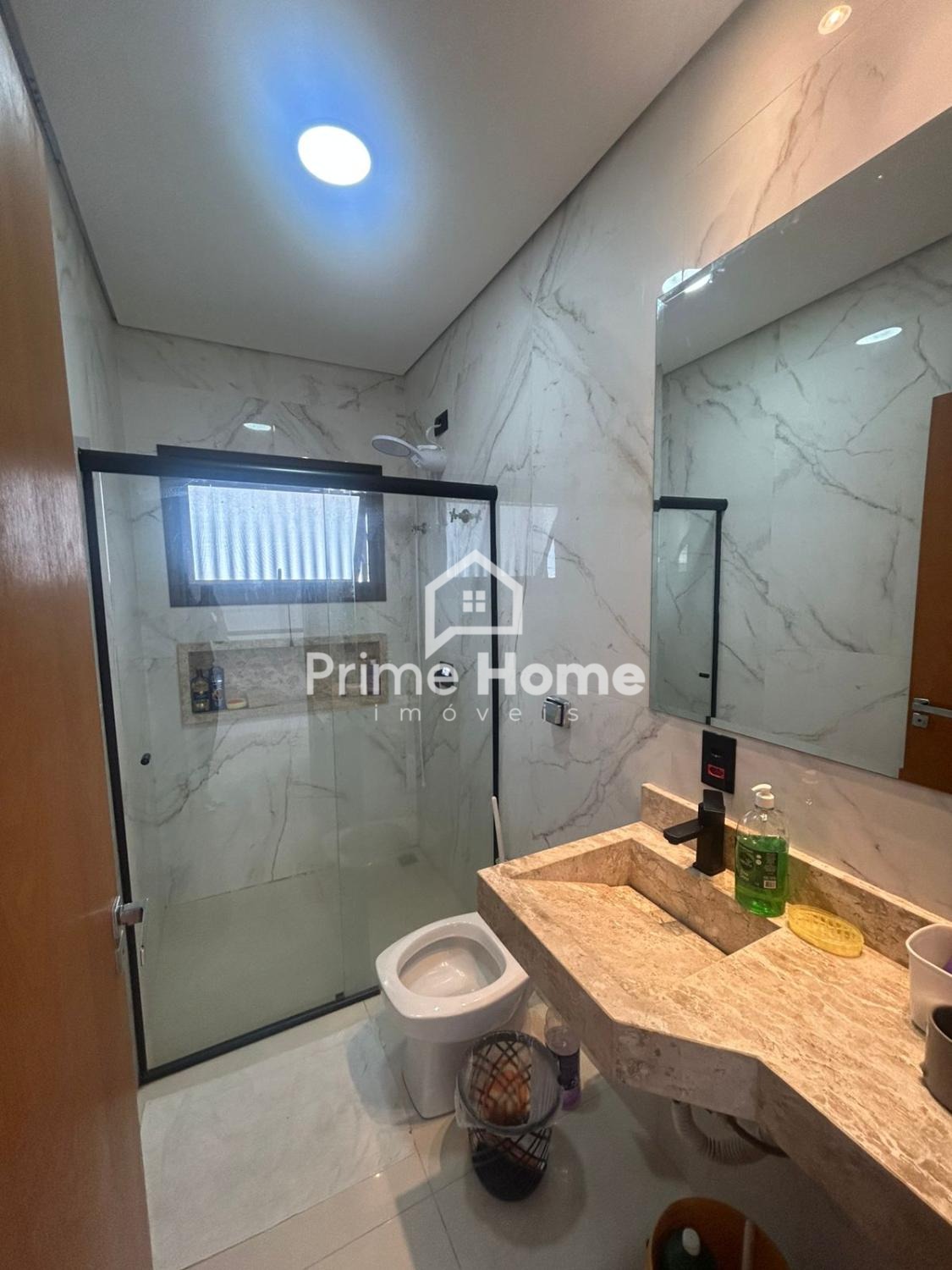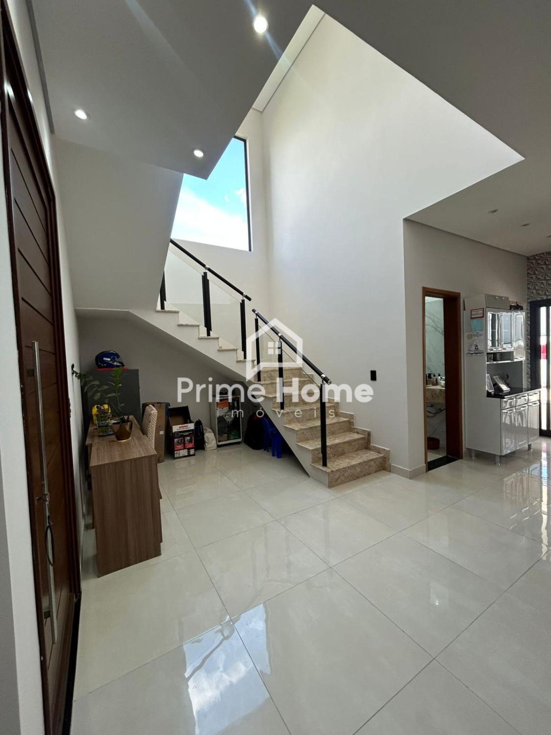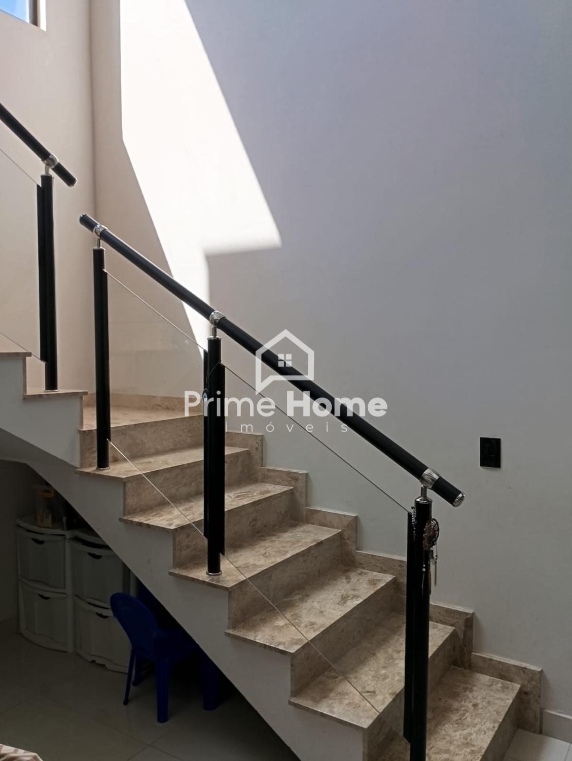 No pavimento térreo, conta com sala de jantar integrada à cozinha americana, proporcionando um ambiente moderno e funcional. Dispõe ainda de área gourmet com churrasqueira, lavanderia e três banheiros completos, todos com pias e nichos em mármore travertino, além de revestimento até o teto.