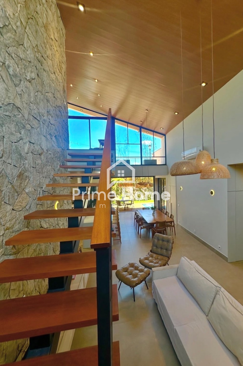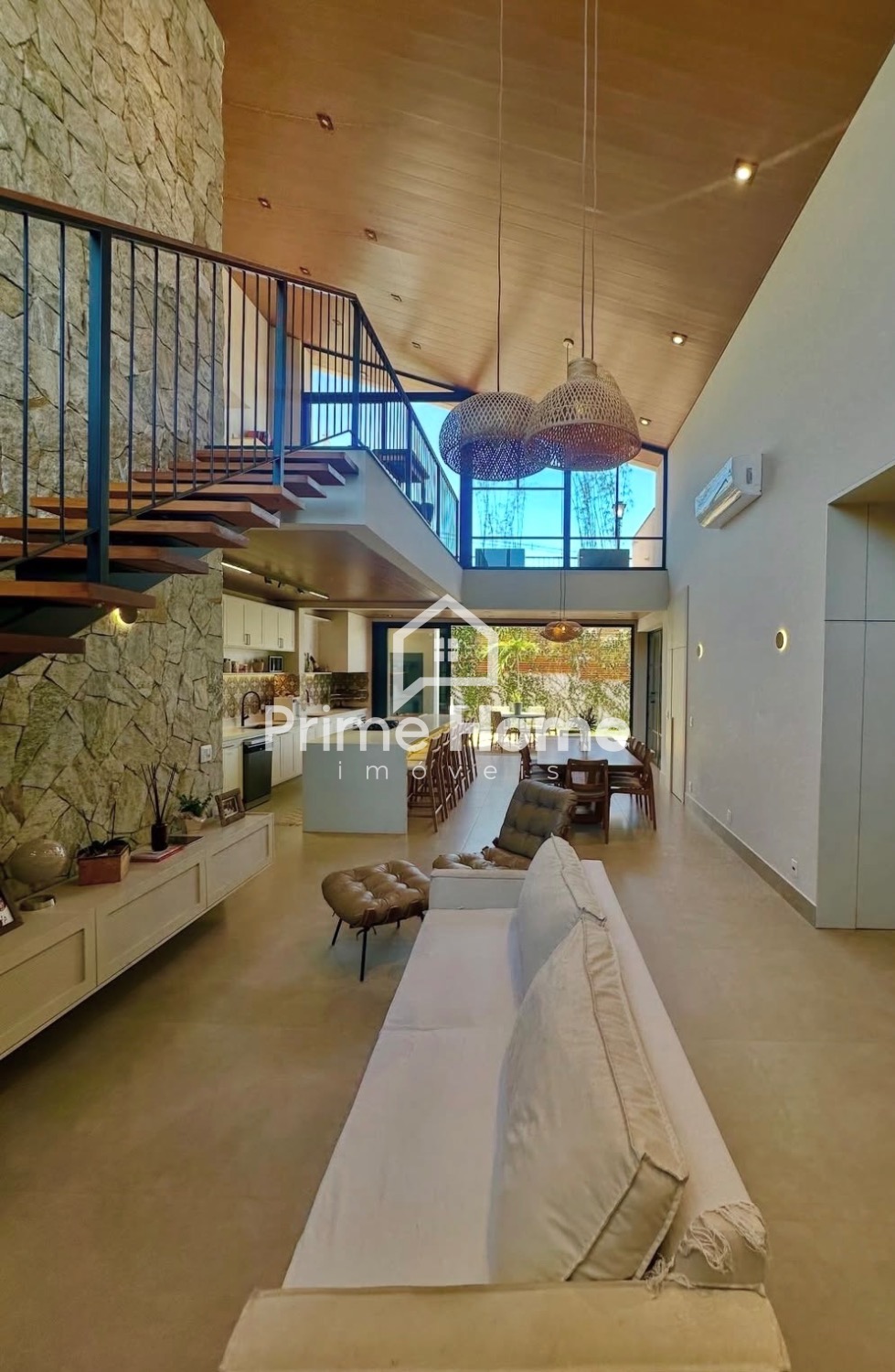 A residência conta com automação completa integrada à Alexa, permitindo o controle inteligente de iluminação, som e outros recursos, além de ar-condicionado na suíte master.